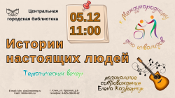 Центральная городская библиотека приглашает всех желающих на тематический вечер «Истории настоящих людей». Это будет уникальная возможность окунуться в мир творчества и вдохновения, познакомиться с удивительными историями людей, чья жизнь является ярким примером мужества и стойкости.