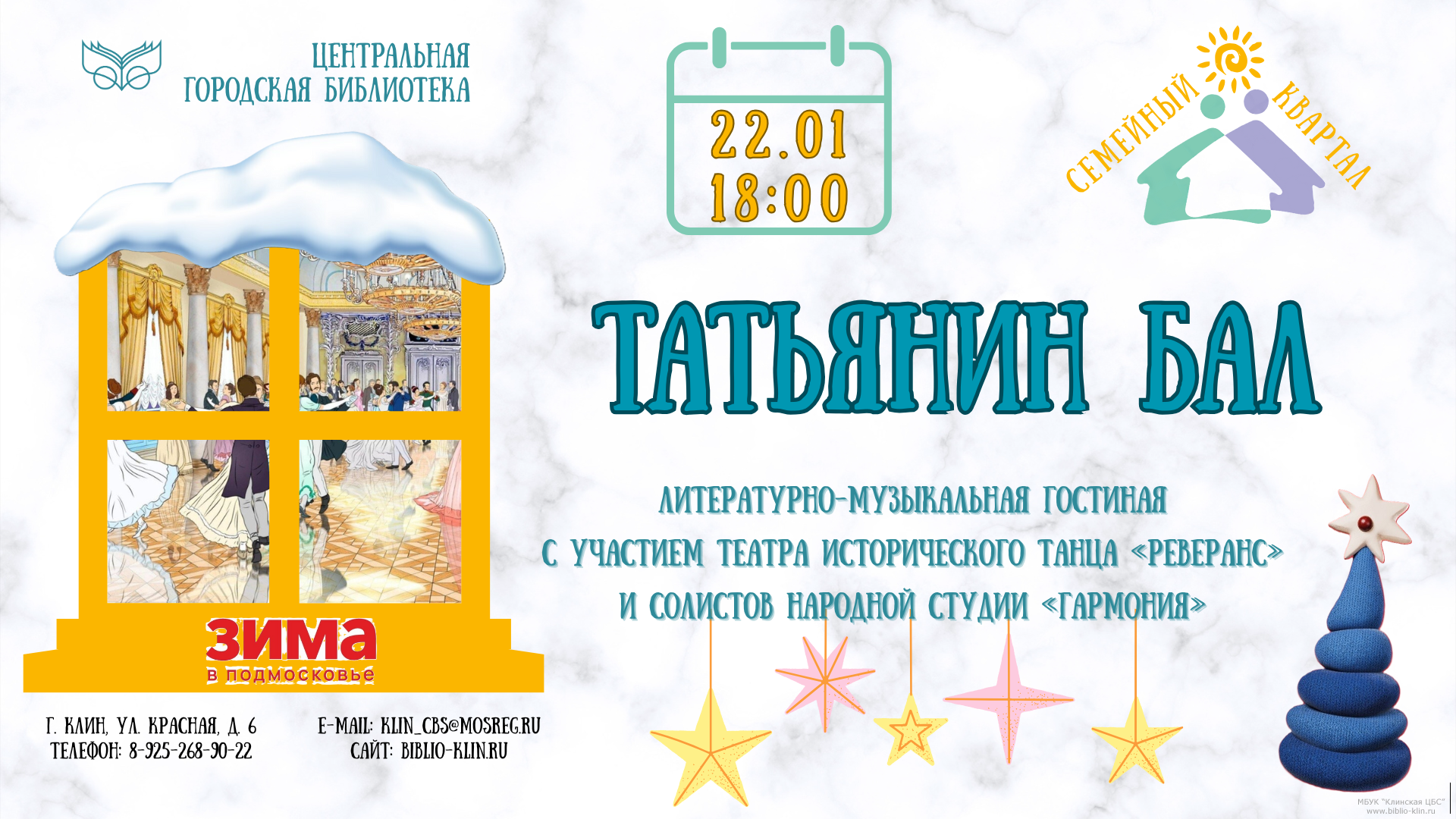 22 января в клубе «Семейный квартал» состоится литературно-музыкальная гостиная «Татьянин бал».