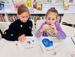 После интеллектуальных баталий юные читатели погрузились в мир творчества. Кто-то смастерил уникальные варежки, а кто-то принялся за создание объемной фигурки Деда Мороза, раскрашивая детали и собирая их в единое целое. Атмосфера была волшебной: смех, обсуждения и фантазия помогли сделать настоящие шедевры.