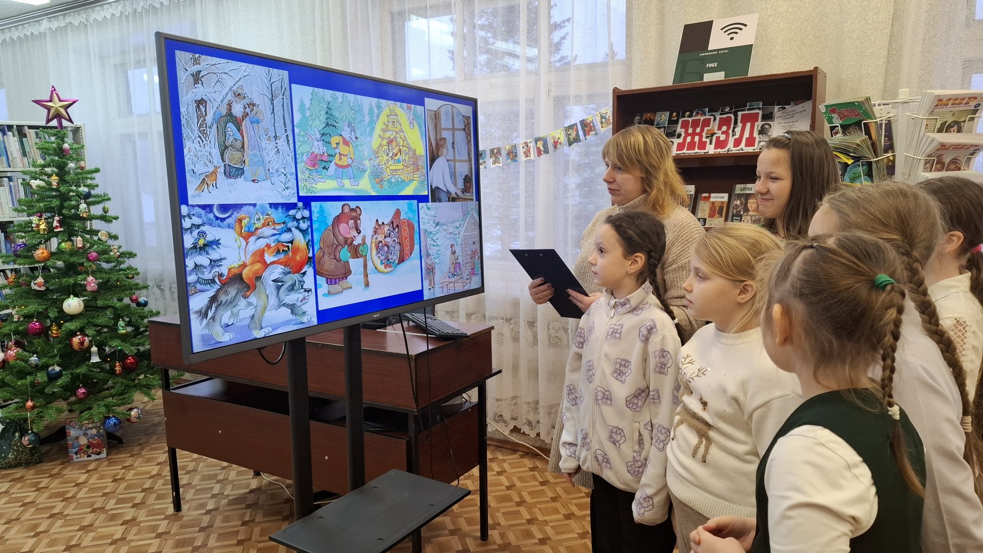 18 ноября в России отмечается день рождения одного из самых любимых детьми и взрослыми сказочных персонажей – Деда Мороза. Эта дата выбрана неслучайно. Считается, что именно в этот день в Великом Устюге наступает настоящая зима и ударяют первые морозы. По этому случаю малыши дошкольного отделения школы «Планета детства» посетили Спас-Заулковскую сельскую библиотеку, где они совершили виртуальное путешествие «С Днем рождения, Дедушка Мороз!». Побывав в сказочной резиденции главного волшебника, ребята узнали, какие необычные комнаты есть в его тереме и что за чудеса можно там увидеть. Дети выяснили, что у Деда Мороза имеется почта, ателье мод, зимний сад, ледник, обсерватория, библиотека, лаборатория, гардеробная, специальная комната для подарков и даже посчитали, сколько подушек в спальне на кровати у этого новогоднего героя, творящего чудеса. В завершение встречи мальчики и девочки с удовольствием отгадали загадки о зиме, о праздничной елке и сказочных персонажах.