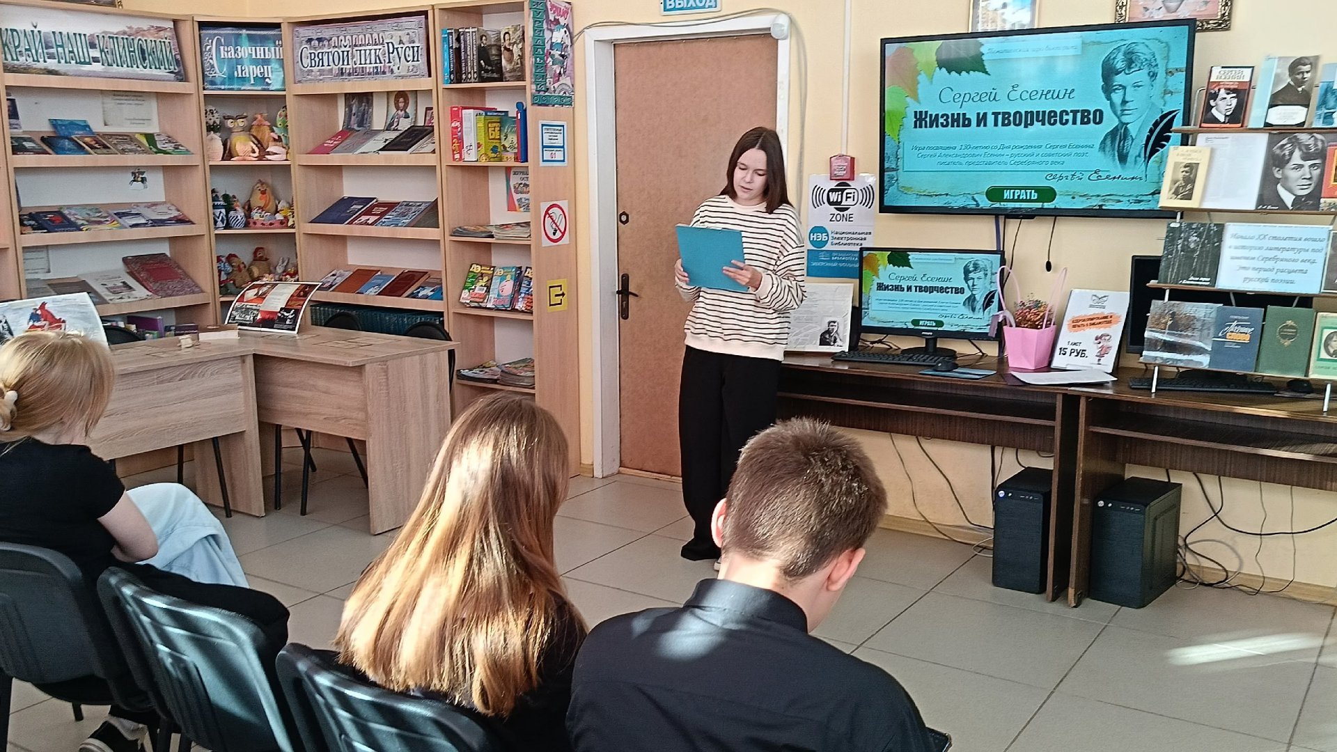 К 130-летию со дня рождения русского поэта Сергея Есенина в Воронинской сельской библиотеке состоялся час поэзии «Судьба и лира Сергея Есенина». Обучающиеся 8 «В» класса школы «Имена Победы» познакомились с жизнью и творчеством выдающегося поэта, который писал о родной природе, дружбе и любви. В исполнении ребят звучали такие стихи, как «Письмо матери», «Не жалею, не зову, не плачу», «Шаганэ ты моя, Шаганэ», «Клен ты мой опавший…».