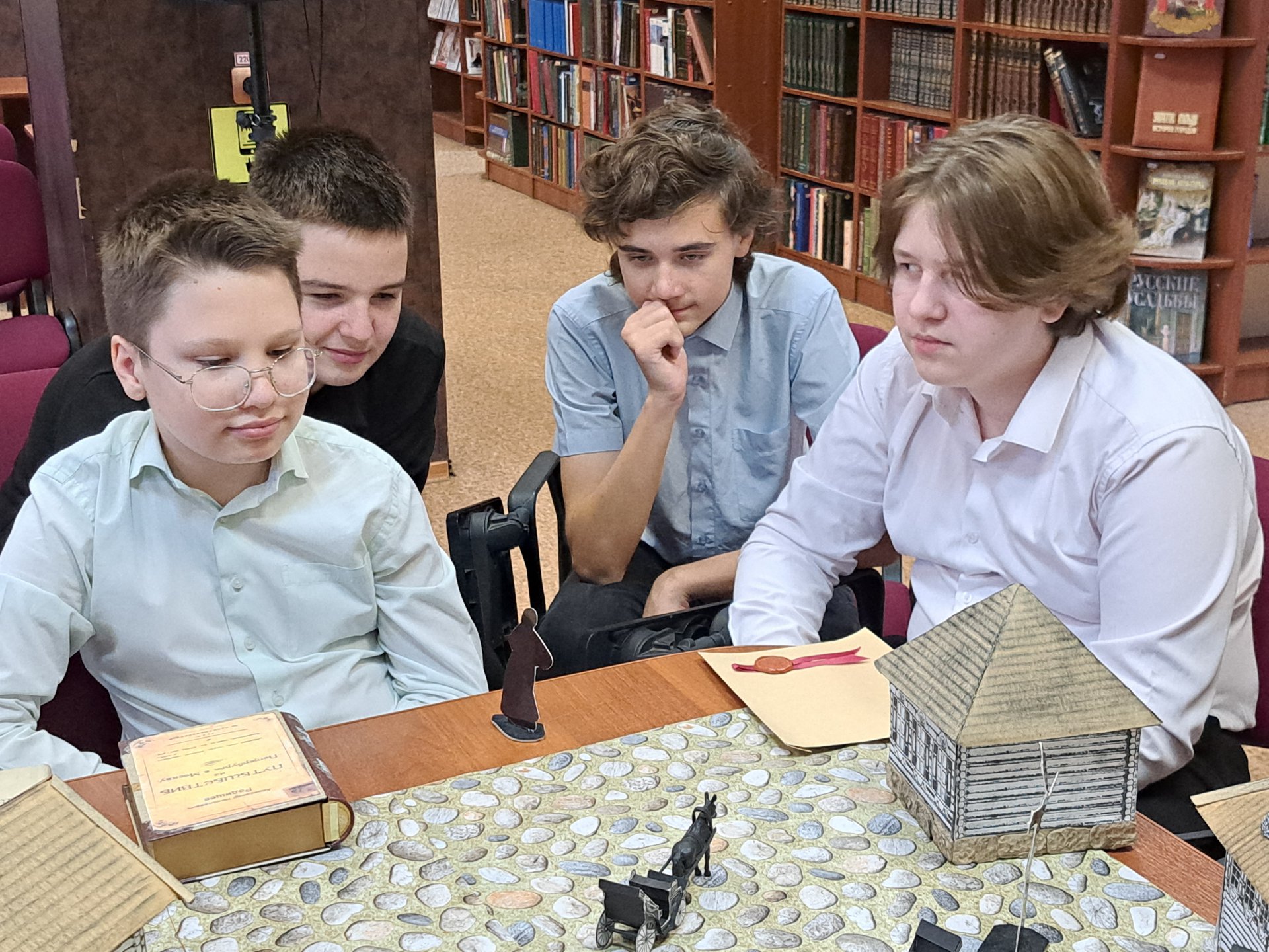 Особый интерес у гимназистов вызвал настольный иммерсивный спектакль «Станция Клин от Радищева до Пушкина», созданный по мотивам путешествий русских классиков. Их впечатлили необычные декорации, звуковое сопровождение и интерактивный реквизит. Увлекательные задания погрузили юных клинчан в атмосферу конца XVIII — начала XIX века и сделали соучастниками происходящих событий.