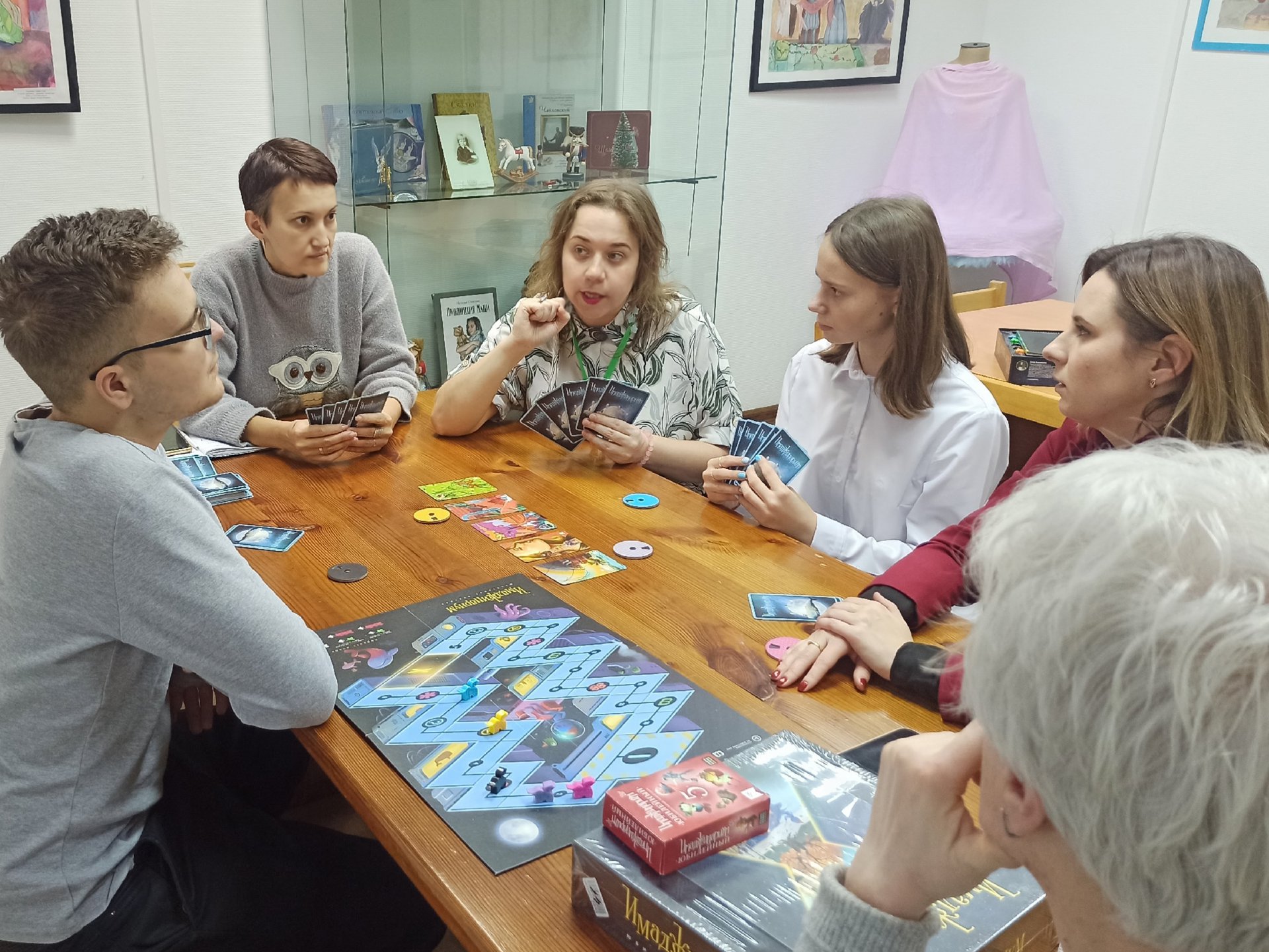 7 ноября библиотекари Центральной городской библиотеки провели для сотрудников Государственного мемориального музыкального музея-заповедника П. И. Чайковского обучение по интеллектуальным настольным играм, связанным с искусством, воображением и творчеством.
