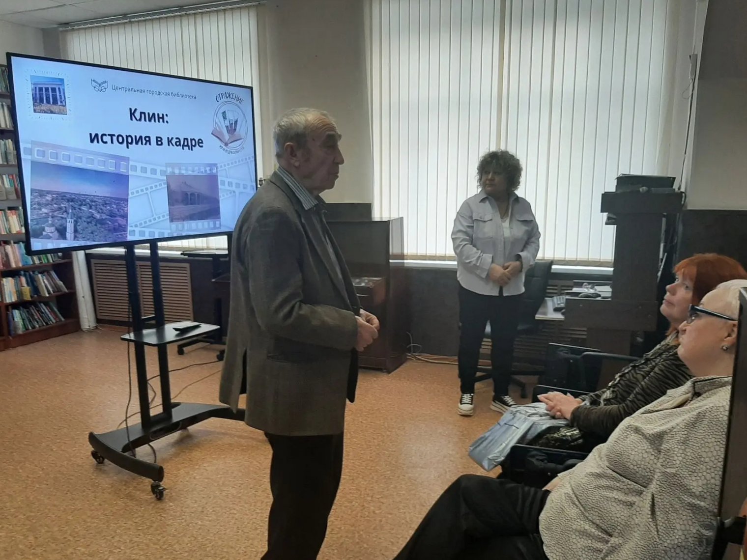 11 марта в Центральной городской библиотеке в рамках краеведческого клуба «Отражение» прошла виртуальная экскурсия «Клин: история в кадре». Клинский поэт, писатель и краевед Вячеслав Моисеевич Пернавский познакомил читателей с архивными фото и видеокадрами улиц и зданий города, рассказал их историю. По снимкам и фильмам присутствующие смогли проследить, как выглядел город раньше и как сохранился его исторический облик сегодня. Виртуальное путешествие получилось очень оживленным и интересным, посетители задавали вопросы, делились своими историями и впечатлениями. Руководитель Клинского литературного объединения «Творчество» Маргарита Спиридонова и поэт Наталья Красулина, вдохновленные темой родного города, прочитали стихи собственного сочинения о Клине и клинчанах. Участники клуба тепло поблагодарили за интересную и познавательную встречу.
