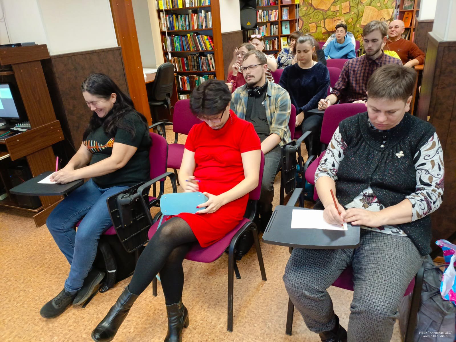 30 октября в Центральной городской библиотеке в рамках краеведческой программы для молодежи «Клин — сохраняя прошлое, думаем о будущем» прошло интерактивное игровое мероприятие «Клин литературный». Активное участие в нем приняли семиклассники и восьмиклассники из гимназии им. В. Н. Татищева. Они дружно отвечали на вопросы, называли события, даты, имена знаменитых поэтов и писателей, тех, кто жил, работал или бывал на Клинской земле.