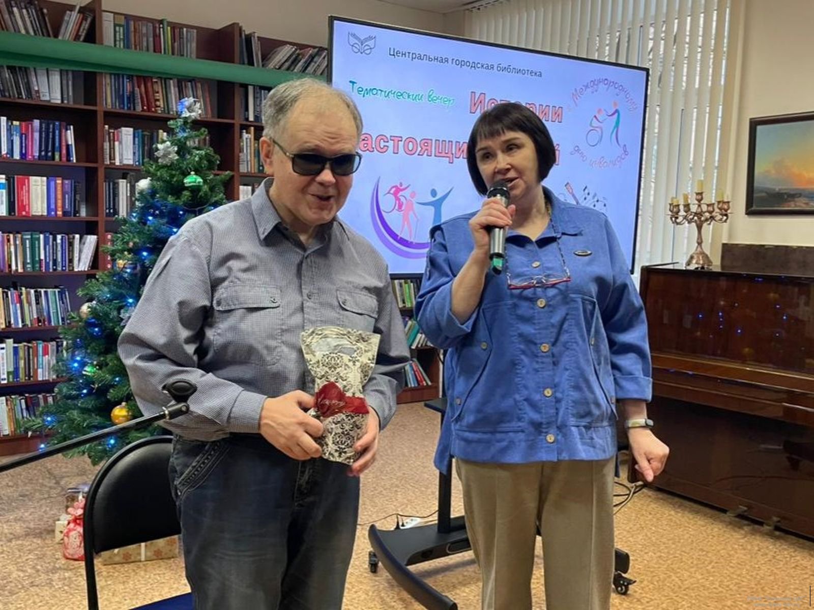 5 декабря в Центральной городской библиотеке прошел тематический вечер «Истории настоящих людей», посвященный Международному дню инвалидов. Гости встречи стали свидетелями настоящего творческого чуда. Андрей Рыбаченко, инвалид по зрению, покорил зал своей многогранностью: его пронзительные стихи, авторская музыка, виртуозная игра на баяне и душевный вокал создали мощную, искреннюю атмосферу.
