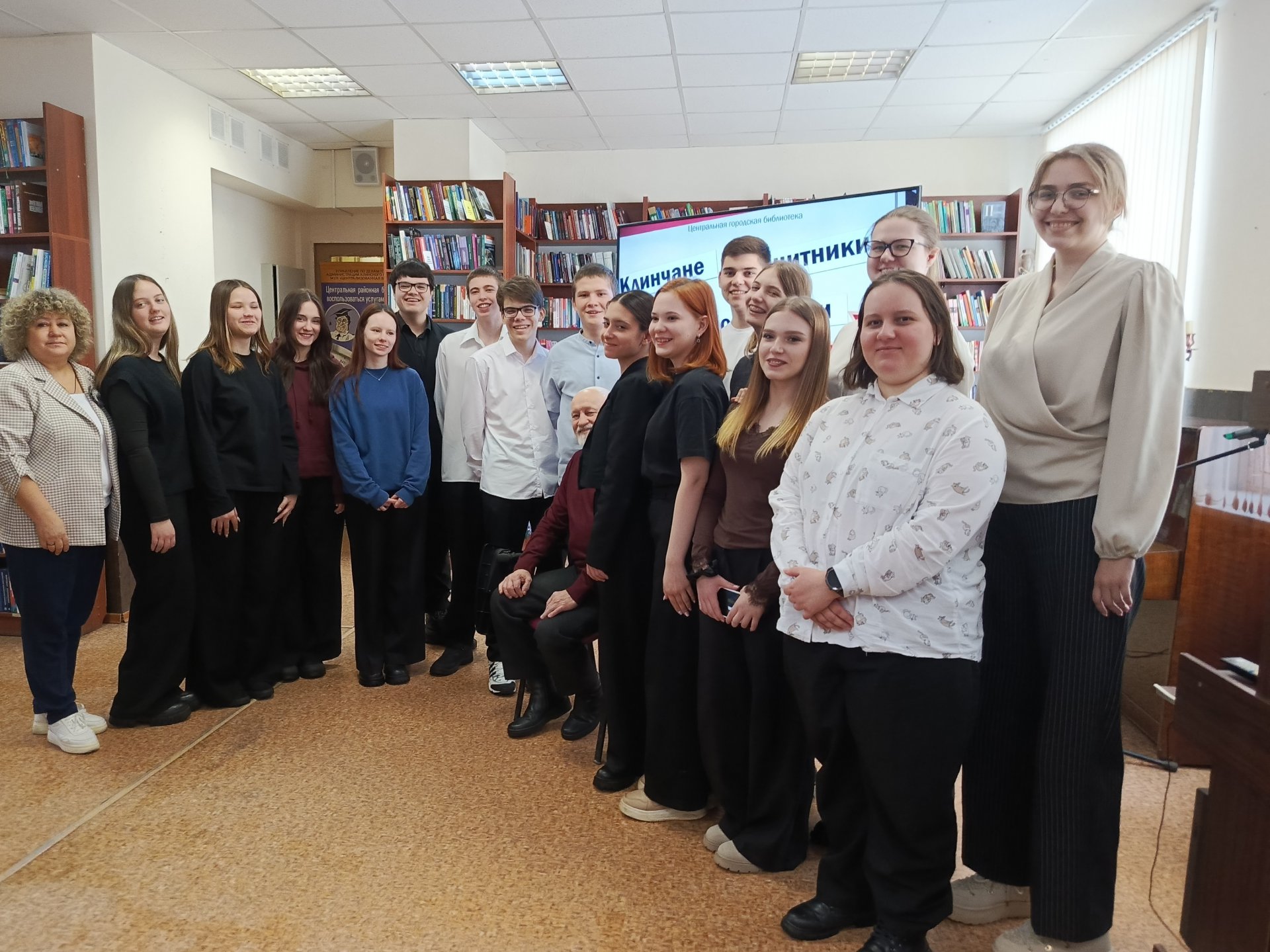 18 февраля Центральная городская библиотека провела краеведческий онлайн-турнир «Клинчане. Защитники. Победители», посвященный Дню защитника Отечества. Ученики гимназий им. В. И. Танеева и им. В. Н. Татищева встречались онлайн с читателями Воронинской сельской библиотеки из школы «Имена Победы». В начале участники тепло поприветствовали друг друга и представили свои команды.