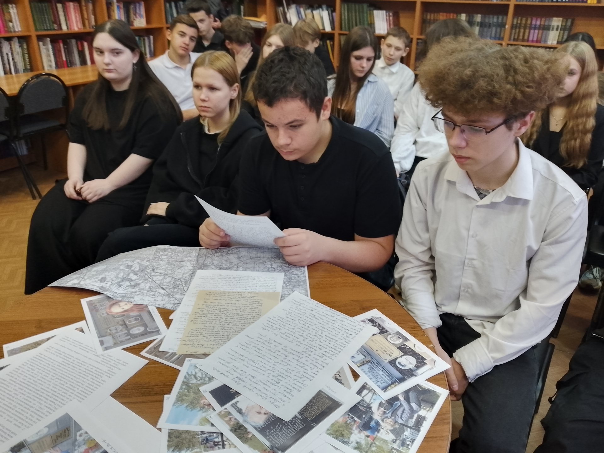 На встрече библиотекари рассказали ребятам о фронтовой судьбе девчонок-санинструкторов из Высоковска, которые в декабре 1942 года ушли на войну, чтобы спасать раненых бойцов. Тринадцать из них не вернулись домой. Имена этих девушек выбиты на гранитных плитах Мемориального комплекса в городе Высоковск, внесены в «Книгу памяти погибших, умерших и пропавших без вести воинов в Великой Отечественной войне 1941-1945 годов» Клинского района Московской области.