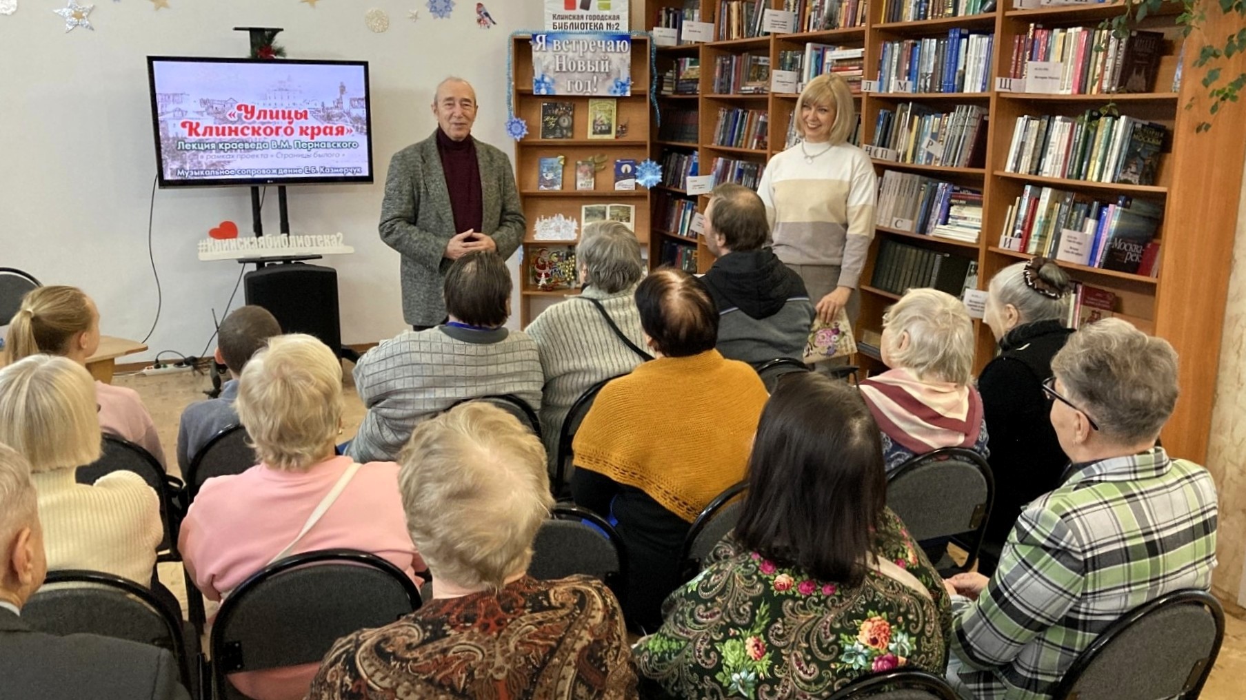 16 января в Клинской городской библиотеке № 2 состоялась лекция краеведа, поэта и писателя Вячеслава Моисеевича Пернавского. Мероприятие прошло в рамках краеведческого лектория «Страницы былого». Лекция называлась «Улицы Клинского края» и вызвала большой интерес у слушателей.