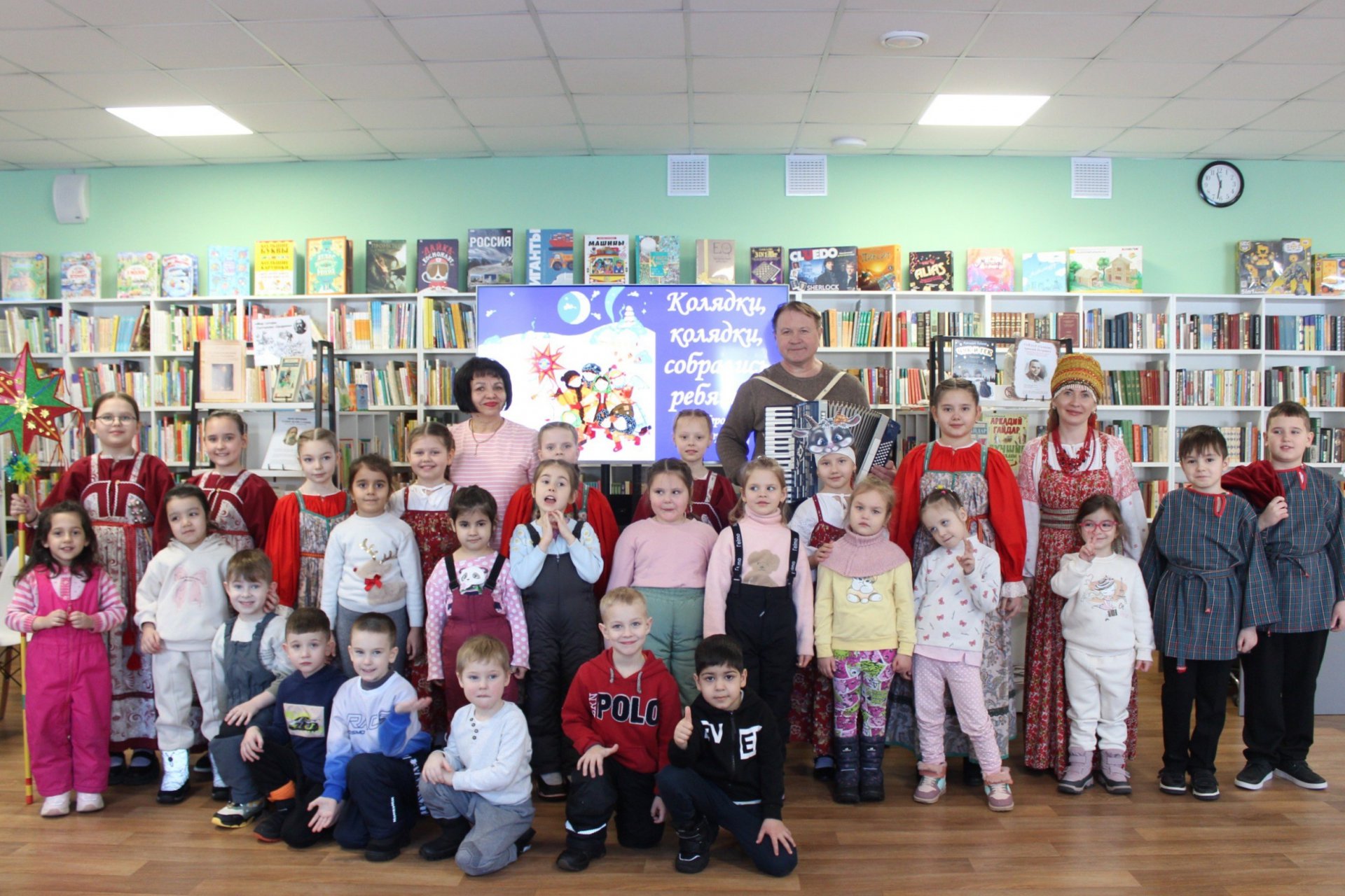 3 февраля в модельной Клинской детской библиотеке № 2 творческое объединение «Детский фольклорный ансамбль «Живица» МБУДО «Дом детского творчества» организовало для наших гостей — мальчишек и девчонок из группы «Зайчики» Центра детства «Жемчужинка» — весёлую игровую программу «Колядки, колядки, собрались ребятки».