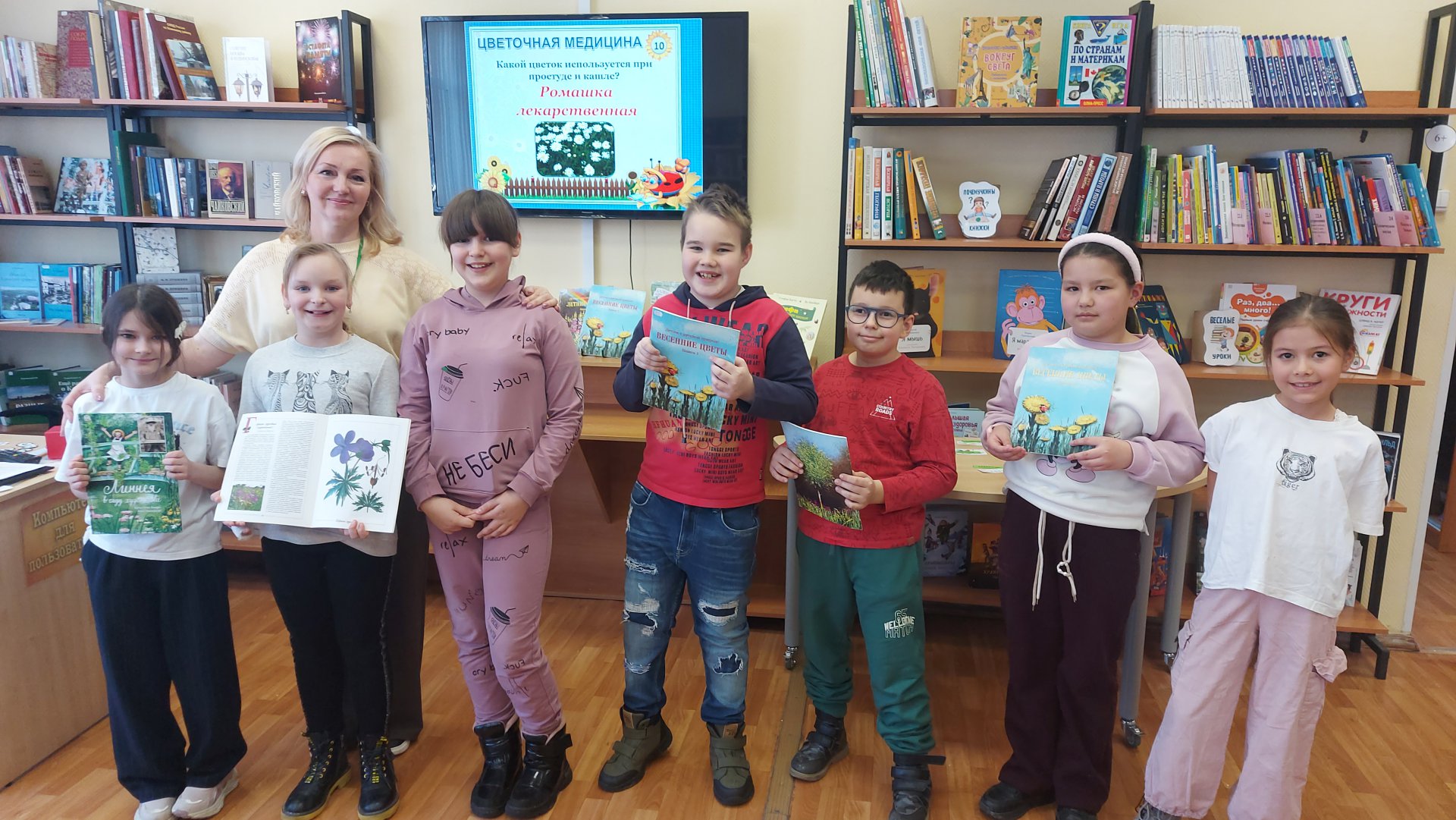 Разделившись на три команды, участники клуба отгадывали цветочные ребусы и анаграммы, делали под музыку цветочную зарядку, играли в интерактивную игру «Цветик-семицветик». В конце мероприятия присутствующие с помощью обычной вилки нарисовали красивые букеты.