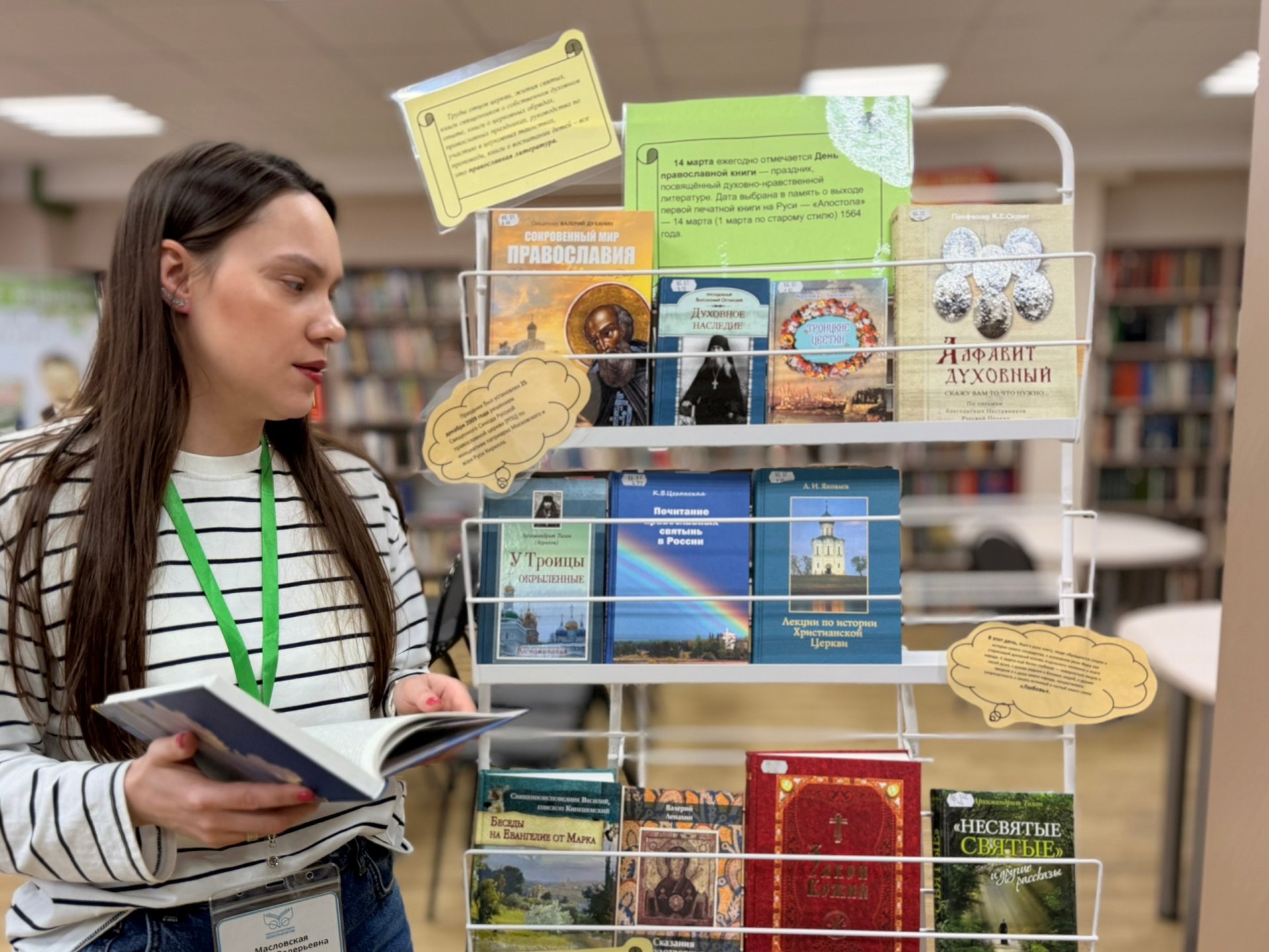 14 марта ко Дню православной книги в Центральной детской библиотеке им. А. П. Гайдара для юных читателей состоялось мероприятие под названием «Живое слово мудрости духовной». Ребята узнали удивительные истории о братьях-просветителях, Святых Кирилле и Мефодии. Перед их взорами ожили картины далекого прошлого: кропотливый труд по созданию первой славянской азбуки, первые, написанные от руки книги, которые несли свет знаний и веры. Юные читатели постигали, сколь сложен и важен был путь, пройденный для того, чтобы сегодня каждая книга могла стать для нас окном в мир. Особое внимание было уделено основам православной веры. Детям доступно и увлекательно рассказали о главных христианских ценностях – любви, милосердии, прощении. Мальчишки и девчонки рассматривали книги, повествующие о духовном наследии. Погружение в атмосферу «Живого слова мудрости духовной» оставило в сердцах ребят светлое чувство и желание узнать еще больше о богатой истории и глубокой вере, ставшими неотъемлемой частью нашей культуры.