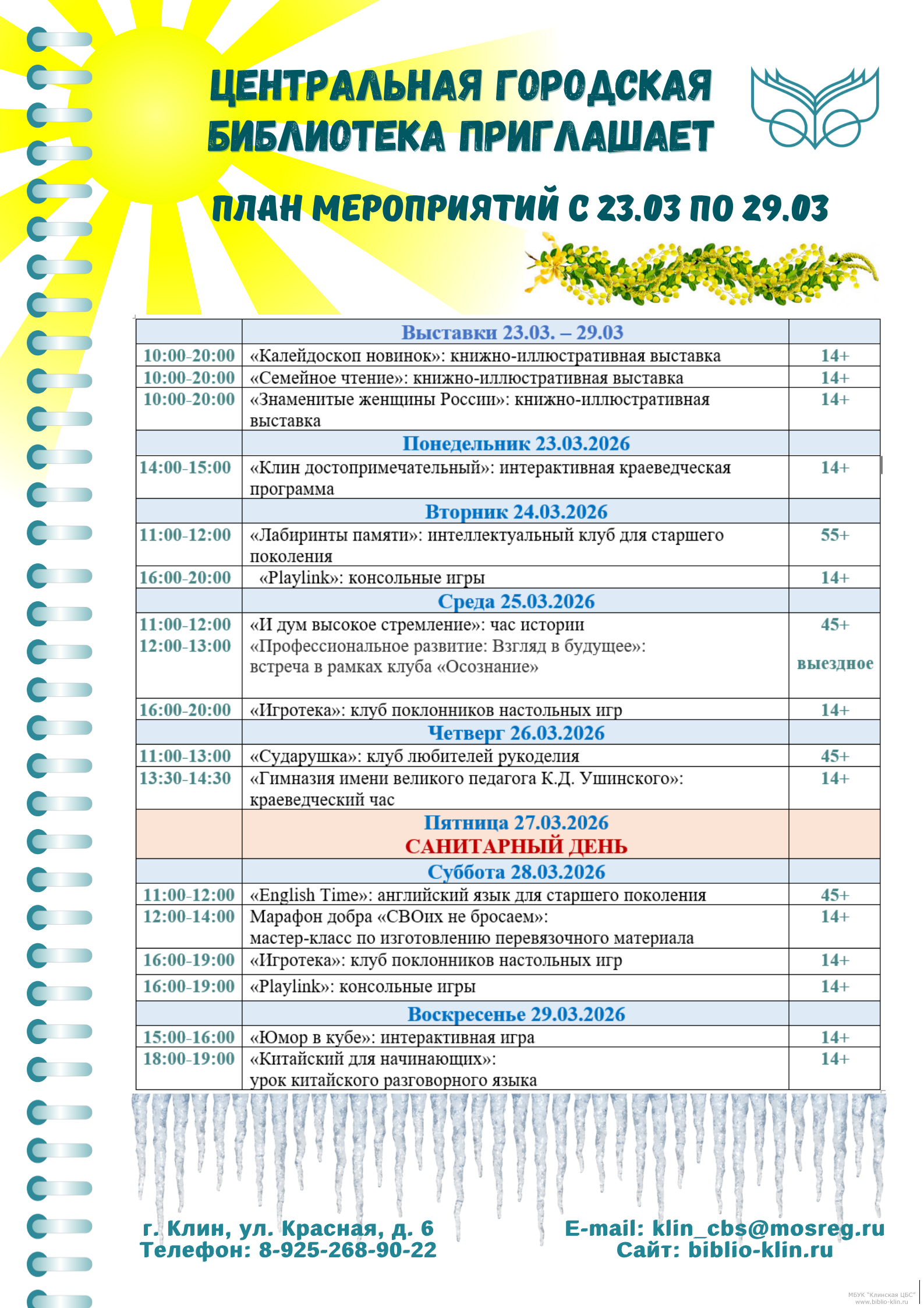 План мероприятий с 23 по 29 марта