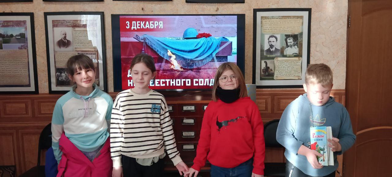 На мероприятии ребята познакомились с историей возникновения этой памятной даты, с книгами о великих сражениях, стихами и прозой военных лет, иллюстрациями памятников Неизвестному Солдату, расположенных в различных городах нашей страны, а также выяснили, почему именно 3 декабря было выбрано для сохранения памяти воинской доблести и узнали много интересного о мемориале «Могила Неизвестного Солдата».