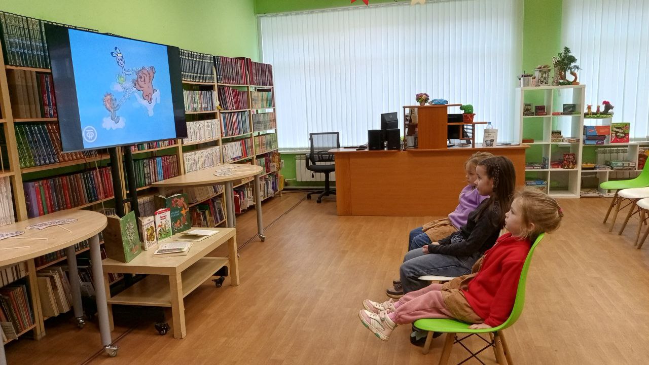 Ребята посмотрели любимый многими мультфильм «Трям! Здравствуйте!» и познакомились с приключениями неразлучных друзей – Ежика и Медвежонка. Вместе с героями дети отправились в волшебное путешествие, где облака превращаются в подушки, а дружба становится самым ценным сокровищем.