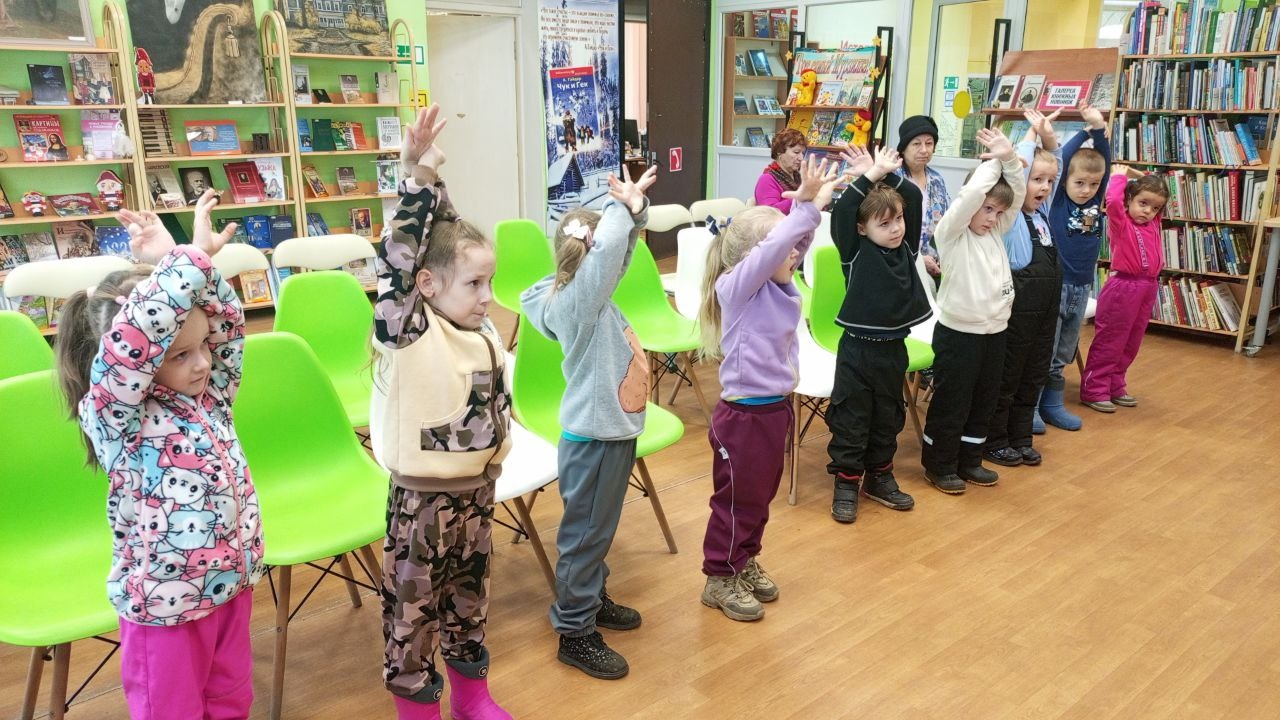 В завершение мероприятия девчонки и мальчишки выучили считалочку про зверей, выполнили динамическую зарядку и посмотрели мультипликационный фильм «Первая зима».