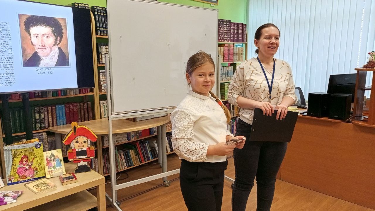 17 декабря в Центральной детской библиотеке им. А. П. Гайдара для учеников 4 «А» класса гимназии им. В. Н. Татищева прошло литературно-познавательное мероприятие под названием «Ожившая сказка», посвященное произведению немецкого гения – Эрнста Теодора Амадея Гофмана «Щелкунчик и мышиный король». Ребята узнали интересные факты из биографии самого Гофмана и познакомились с загадочным героем – Щелкунчиком. Для юных читателей был показан отрывок из мультфильма. А после просмотра, чтобы проверить свою внимательность и знания, ребята с азартом отгадывали загадки.