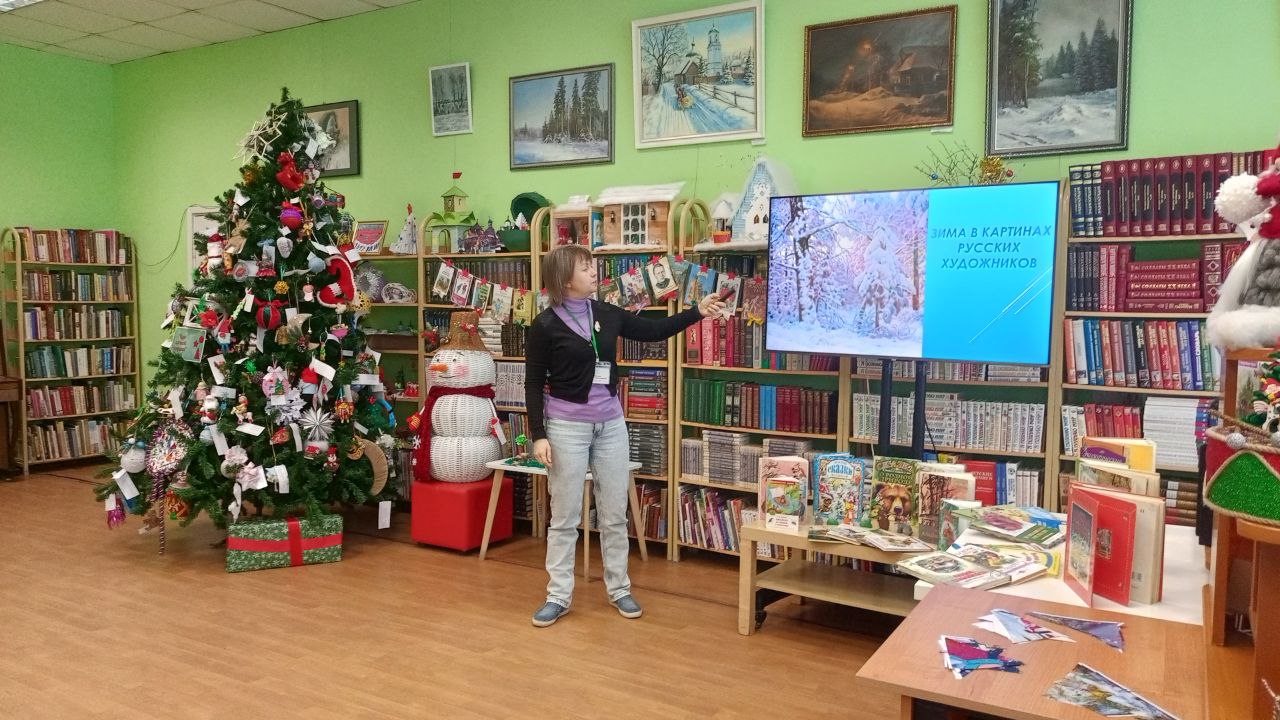Малыши с замиранием сердца рассматривали подборку зимних пейзажей под великолепную музыку П. И. Чайковского и работы знаменитых художников с изображением заснеженных лесов и равнин.