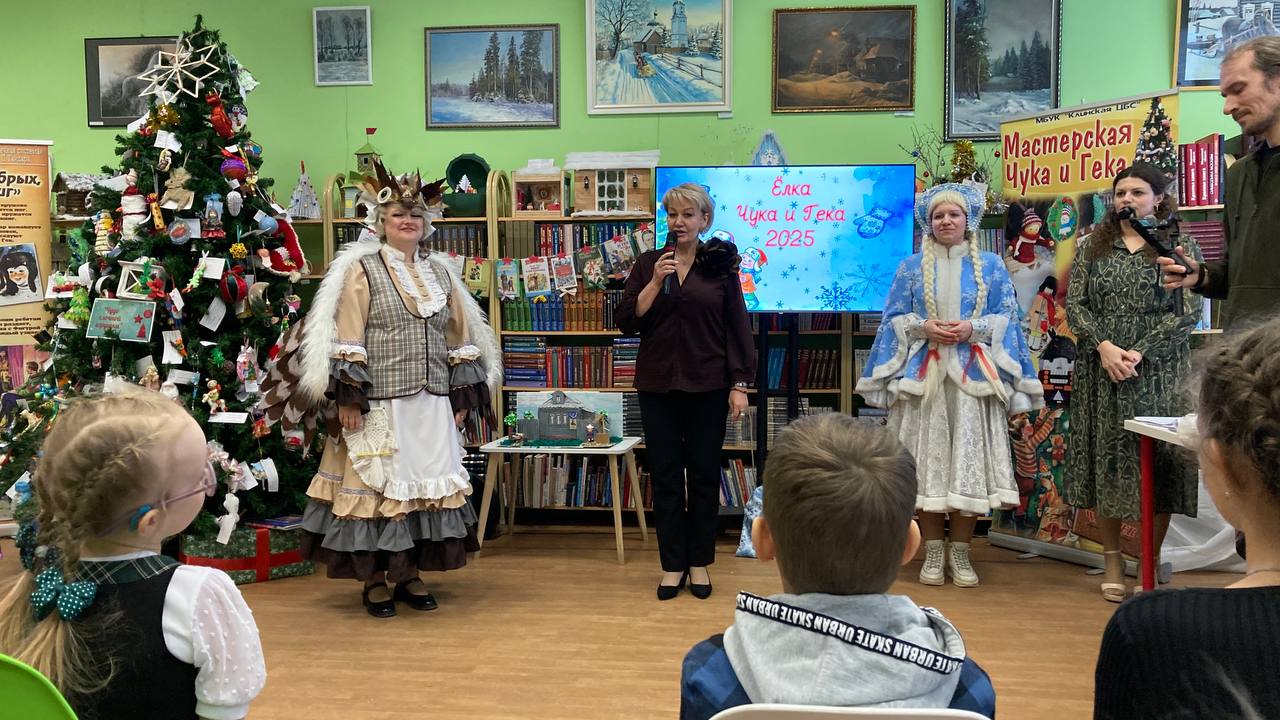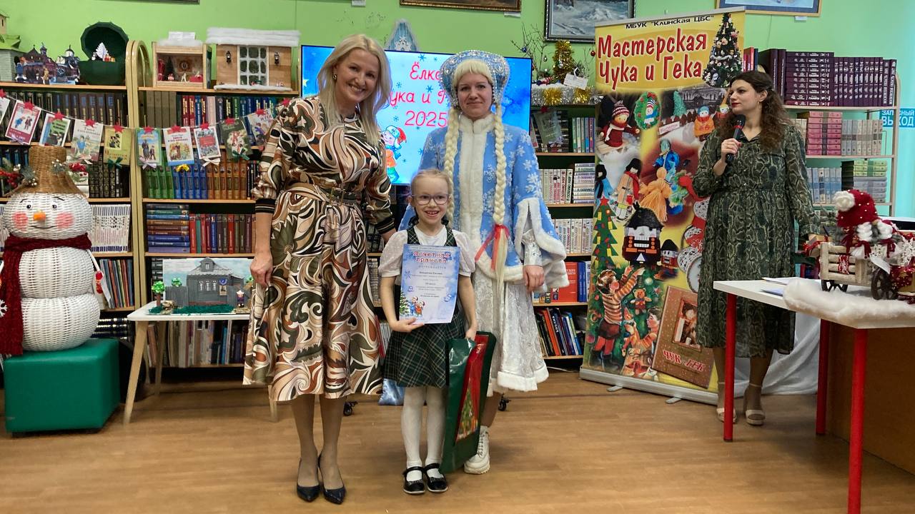 23 января в Центральной детской библиотеке им. А. П. Гайдара прошла яркая церемония награждения участников детского творческого конкурса «Ёлка Чука и Гека-2025». В этот день чествовали юных талантов, представивших свои работы в двух номинациях: «Клинские истории» и «Мой любимый литературный герой». Каждый участник вложил в свою работу немало труда и фантазии, и это по достоинству оценили жюри и гости мероприятия.