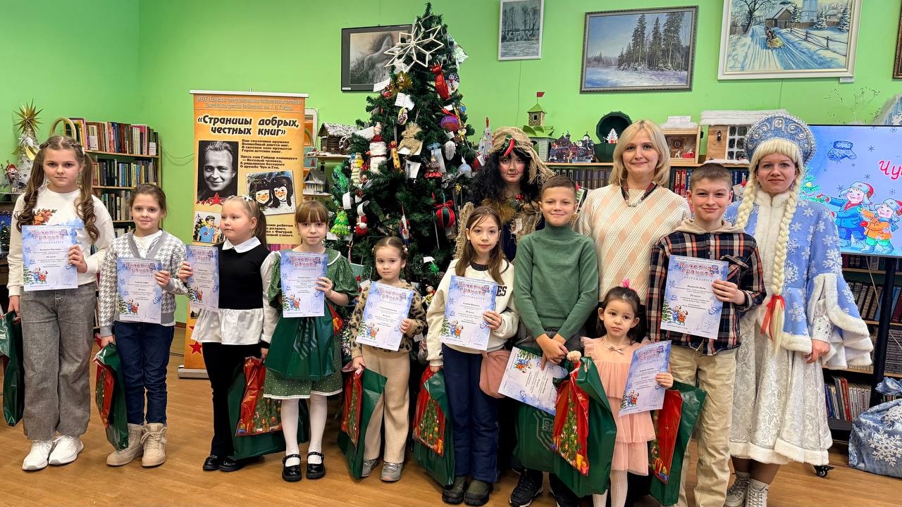 25 января в Центральной детской библиотеке имени А. П. Гайдара прошла торжественная церемония награждения победителей детского творческого конкурса «Ёлка Чука и Гека». В этот день поздравили юных участников, представивших свои работы в двух номинациях: «Новогоднее панно» и «Символ года‑2026». Каждый автор вложил в своё произведение много фантазии и стараний — и эти усилия не остались без внимания: жюри и гости мероприятия высоко оценили творчество ребят.