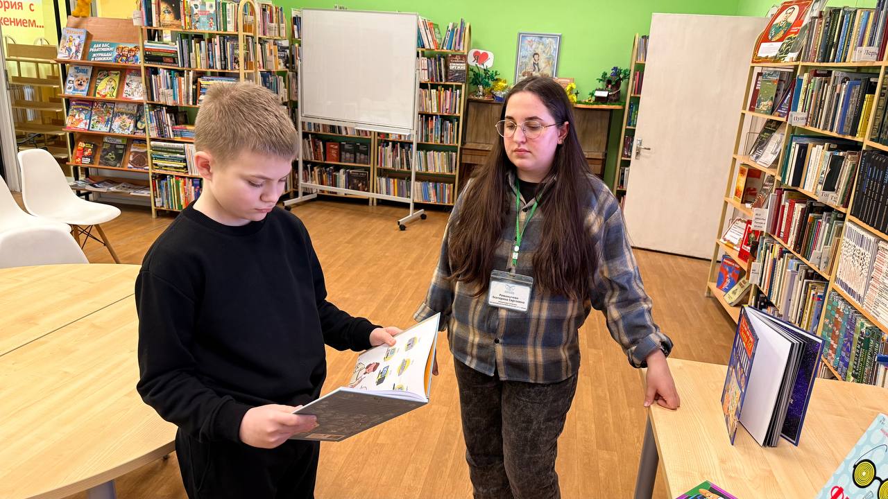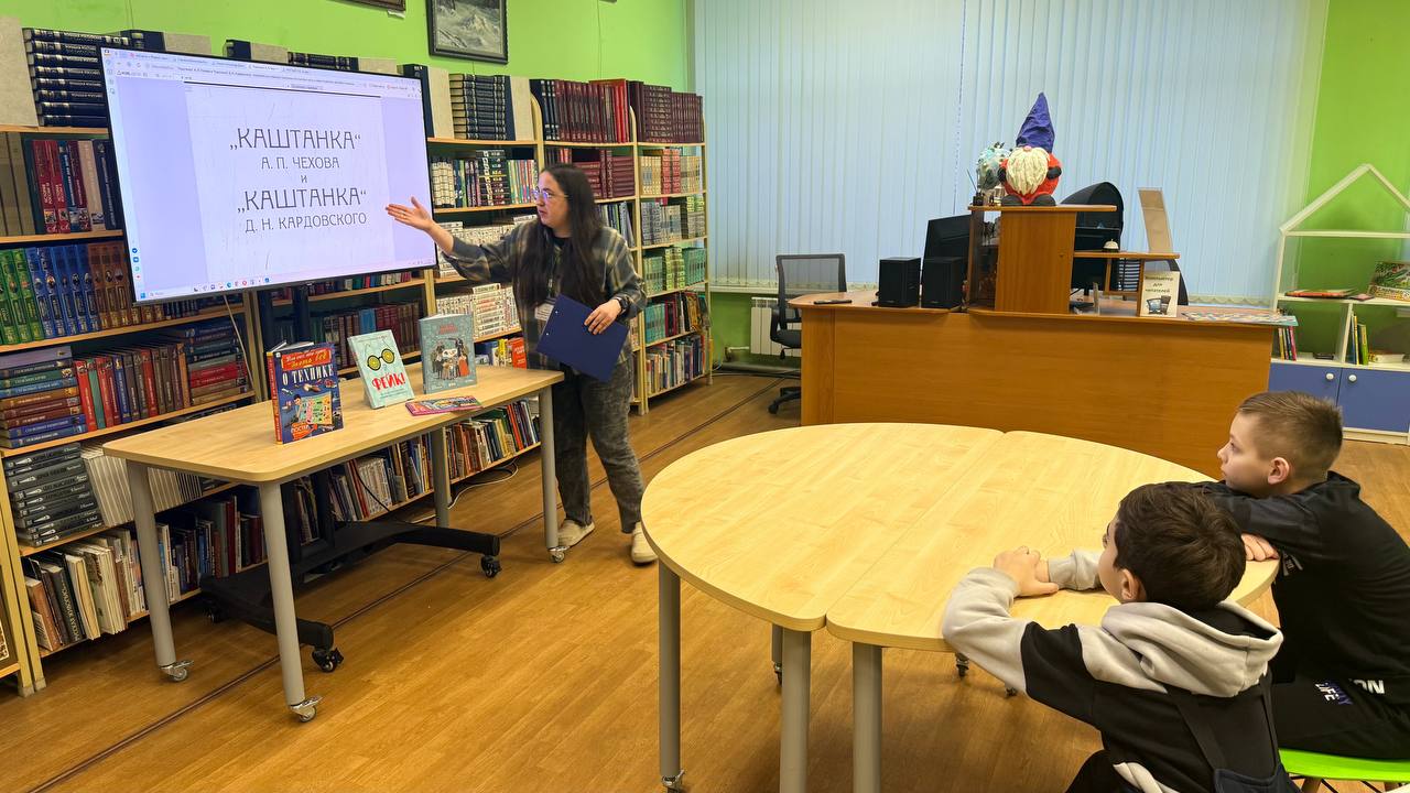 14 февраля в Центральной детской библиотеке имени А. П. Гайдара состоялось информационно-познавательное мероприятие «НЭБ. Дети», организованное для юных читателей. В рамках встречи ребятам рассказали о разнообразных электронных библиотечных ресурсах и подробно познакомили с Национальной электронной библиотекой. Школьники не ограничились просмотром — они активно включились в работу: самостоятельно открывали иллюстрированные учебные книги, листали их и читали. Особой частью программы стал просмотр диафильма по произведению А. П. Чехова «Каштанка». Ребята с интересом следили за историей маленькой собаки, потерявшей хозяина, и обсуждали ключевые эпизоды рассказа.