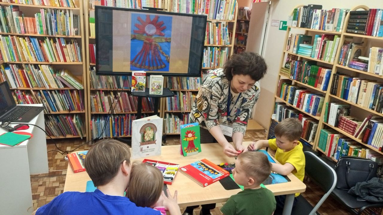 14 февраля в Центральной детской библиотеке им. А. П. Гайдара в рамках клуба «Картинки-пластинки» прошло занятие, посвящённое празднику Масленицы. Ребята познакомились с историей праздника и исполнили масленичные запевки. Затем они приступили к творческому заданию — лепке куклы «Масленица». Дети с увлечением создавали образ куклы, уделяя особое внимание яркому узорному платью.