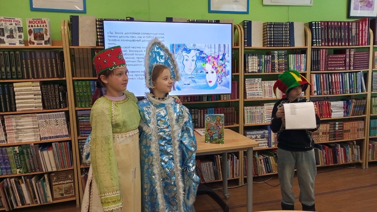28 февраля в Центральной детской библиотеке им. А. П. Гайдара в рамках клуба «Театр книги» прошло литературное мероприятие «Как Зима с Весной боролись». Последний день февраля — День ухода зимы. Этот день символизирует прощание с холодами и символизирует изгнание зимы. Ребята узнали о народных приметах, послушали сказочную историю Г. Скребицкого «Весенняя песня». Затем дети нарядились в яркие костюмы и разыграли небольшой спектакль в стихах про борьбу Зимы и Весны. Всем очень понравилось почувствовать себя настоящими актёрами. Участники ушли домой с хорошим настроением и сладким сувениром.