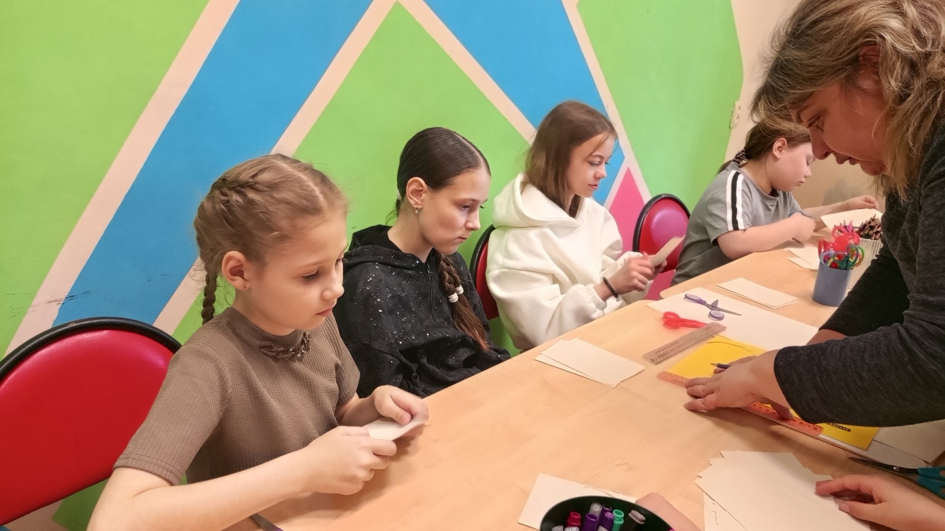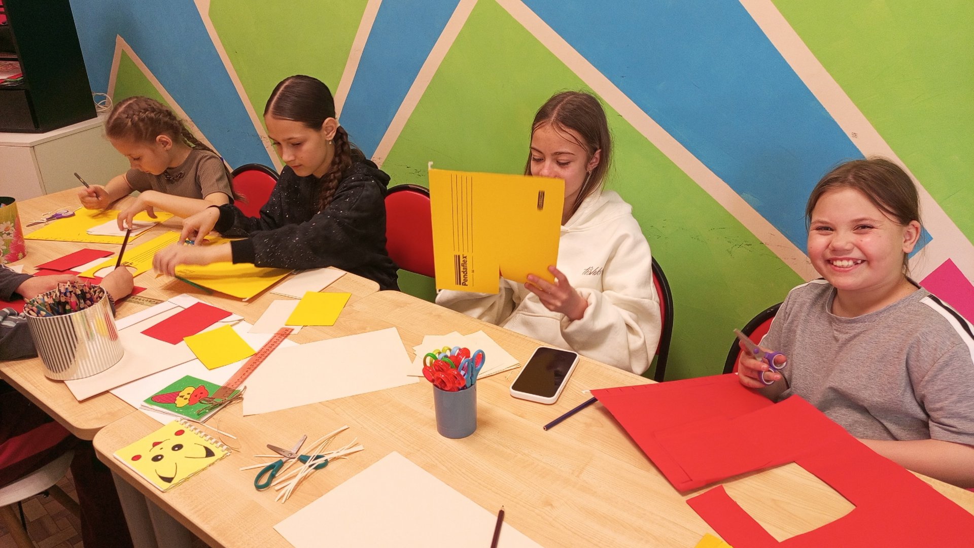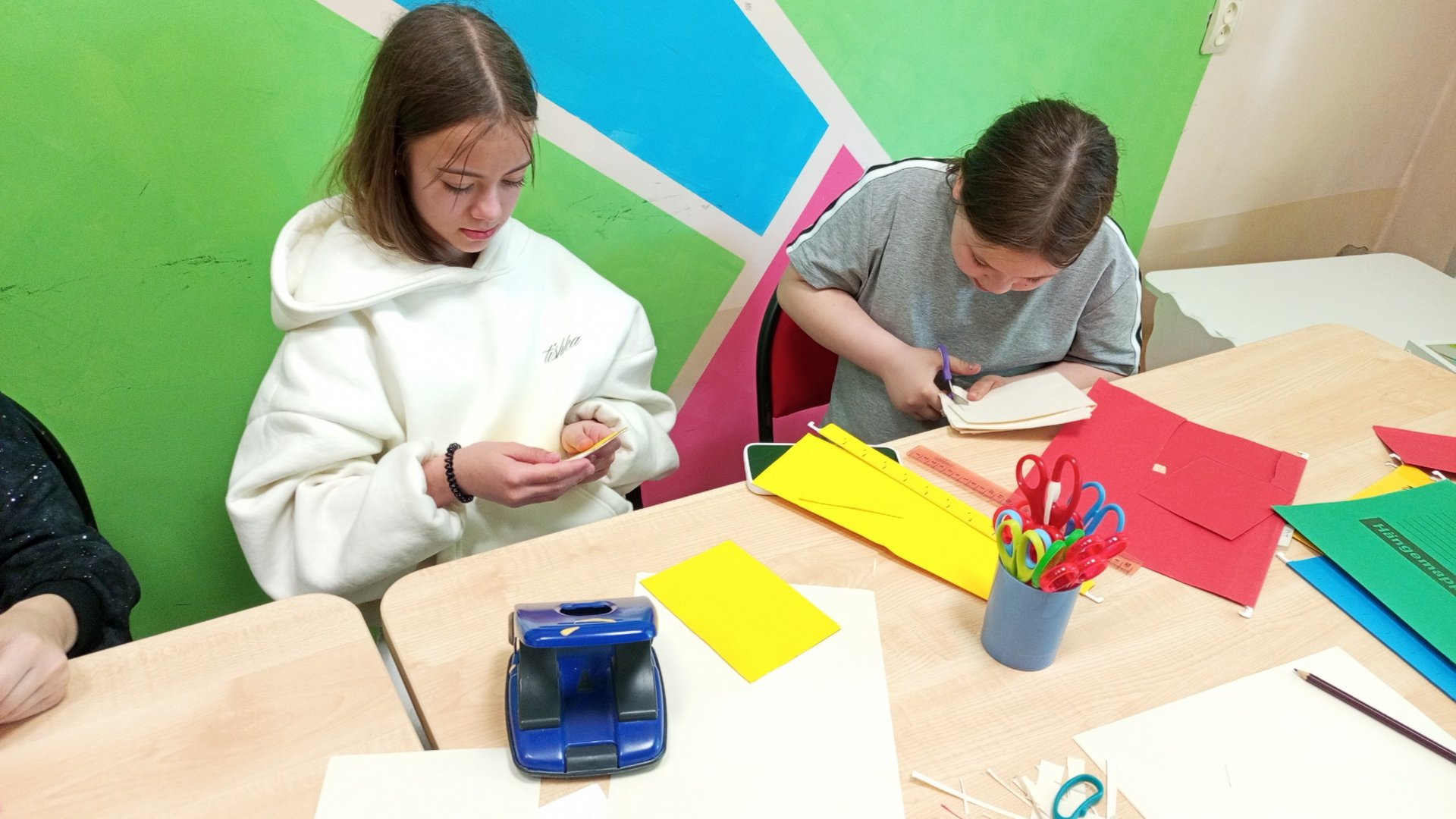 В начале встречи дети узнали об истории блокнота: как появились первые записные книжки, как они менялись со временем и почему стали такими популярными. После теоретической части началась самая интересная — практическая. Ребята самостоятельно вырезали листы, придумывали и рисовали обложки, а затем аккуратно скрепляли все детали, превращая обычные листы бумаги в уникальные авторские блокноты.