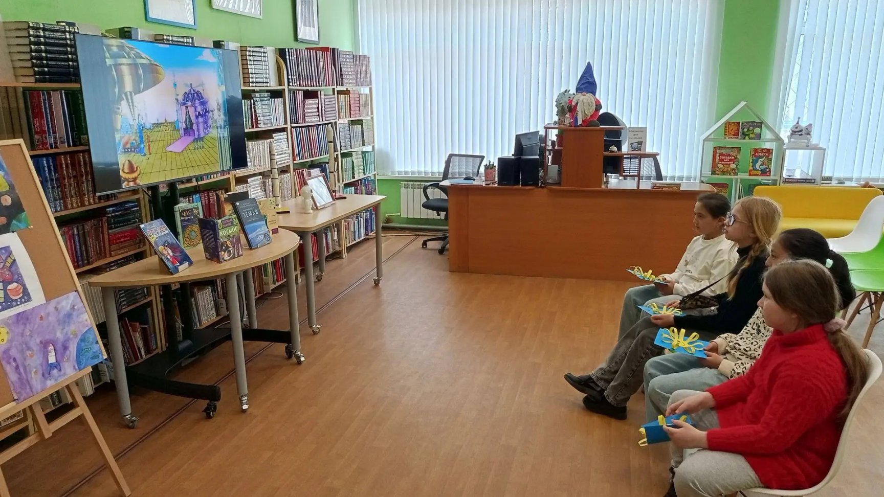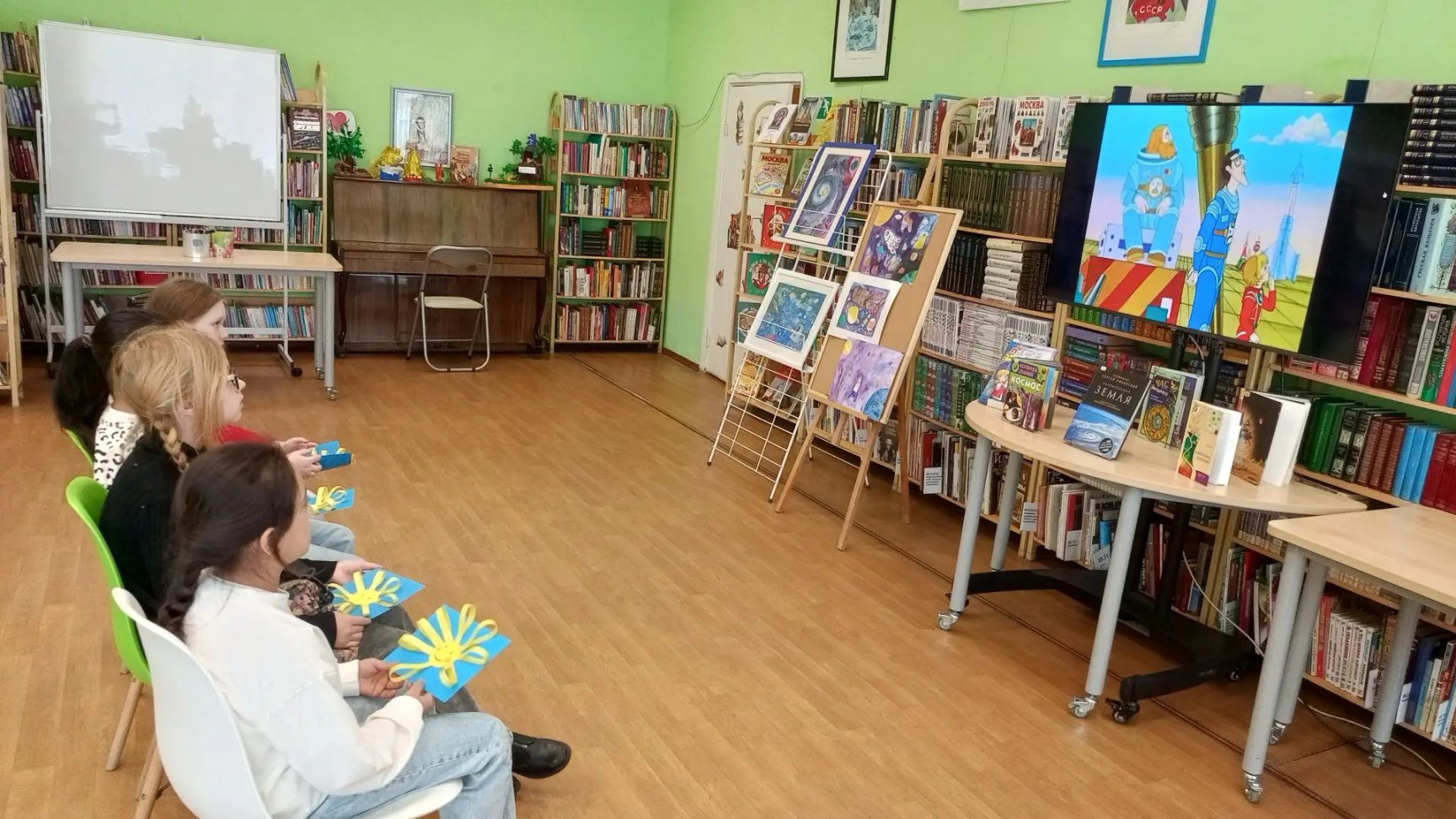 8 апреля в Центральной детской библиотеке им. А. П. Гайдара состоялась встреча ребят клуба «Из книги на экран». На этот раз их ждал культовый мультфильм, снятый по бессмертному произведению Кира Булычева – «Тайна третьей планеты». С первых минут просмотра юные зрители погрузились в удивительный мир будущего, где отважная Алиса Селезнева, ее отец профессор Селезнев и капитан Зеленый отправляются на поиски редких космических птиц. Экран оживил знакомых персонажей: любознательную и смелую Алису, мудрого и доброго профессора, а также немного ворчливого, но преданного капитана. Фантастические пейзажи далеких планет, необычные существа, интригующий сюжет – все это не оставило равнодушными ни одного из присутствующих. Мультфильм, несмотря на свой возраст, до сих пор способен увлечь и заставить задуматься о дружбе, смелости, ответственности и стремлении к познанию неизведанного. Ребята с неподдельным интересом следили за развитием событий, переживая за героев и радуясь их успехам. После просмотра ребята делились своими впечатлениями, вспоминая самые яркие моменты мультфильма.