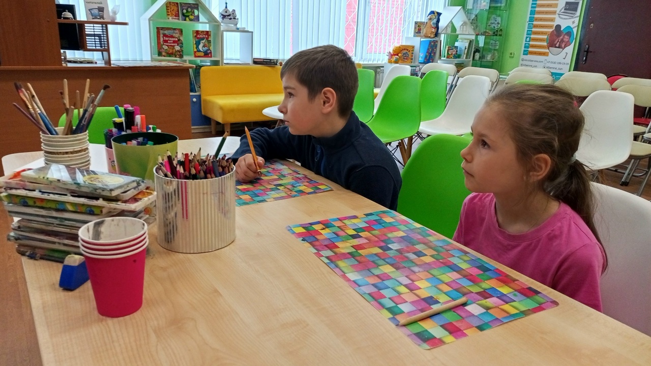 9 апреля в Центральной детской библиотеке им. А. П. Гайдара прошёл мастер‑класс по рисованию акварелью «Космические сны». Юные художники познакомились с необычной техникой рисования свечой, создав загадочные космические узоры, которые затем «оживили» с помощью акварельных красок. Результат превзошёл все ожидания: получились удивительные, неповторимые работы, в каждой из которых — своя маленькая вселенная.