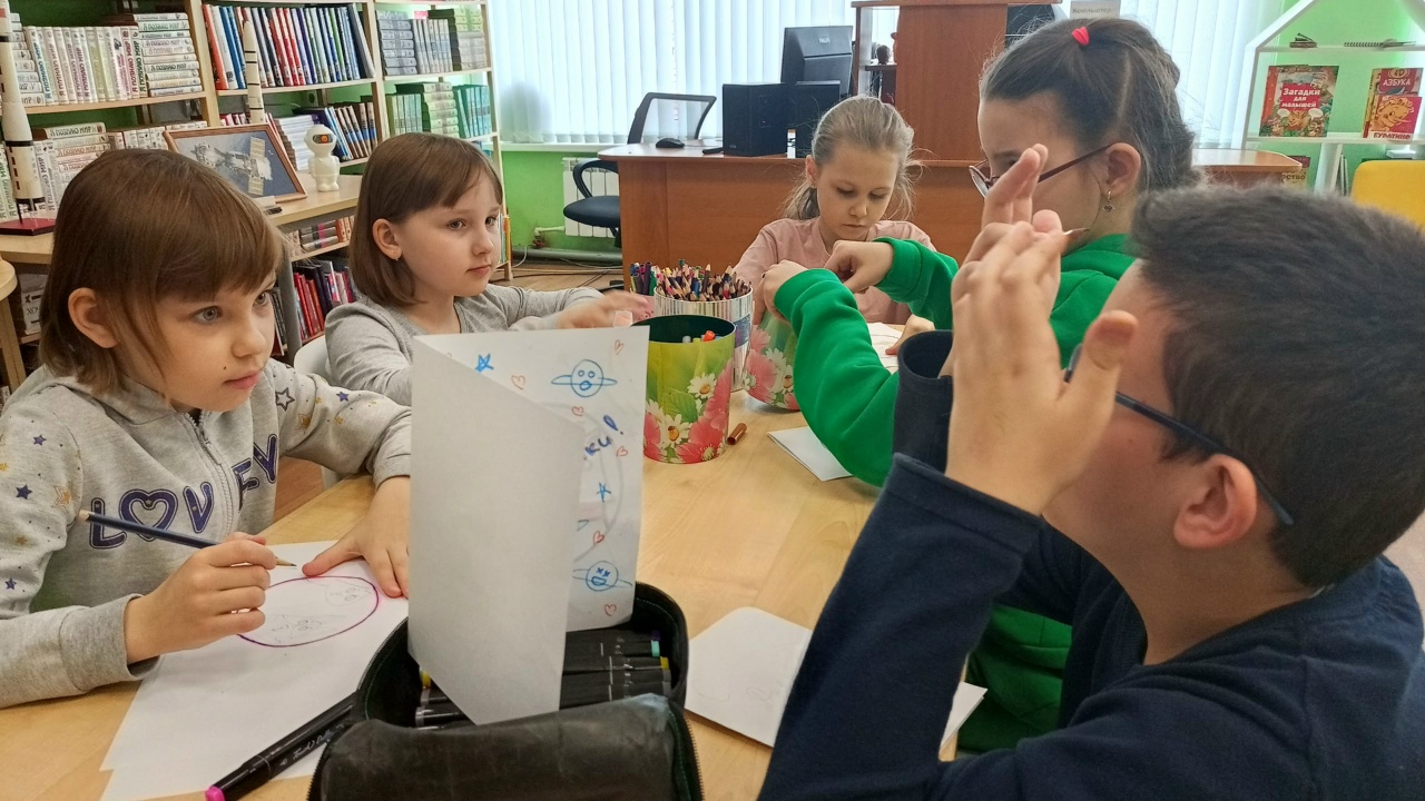 Под руководством библиотекаря юные художники погрузились в мир космоса и творчества. Вдохновлённые историей первых животных-космонавтов, дети с энтузиазмом принялись за создание уникальных открыток ко Всемирному дню авиации и космонавтики.
