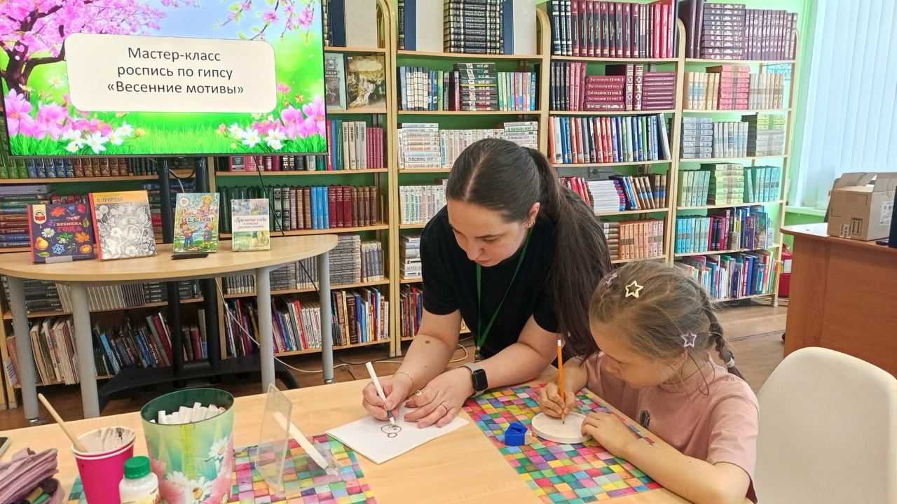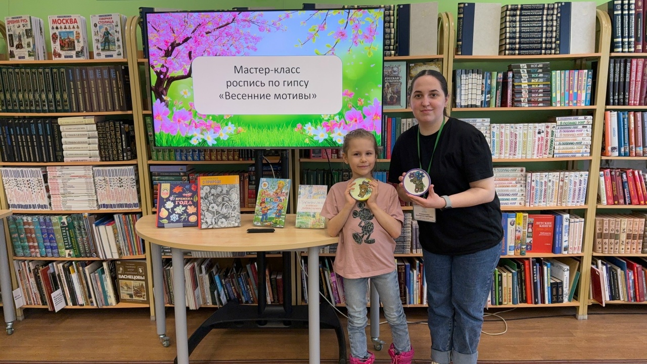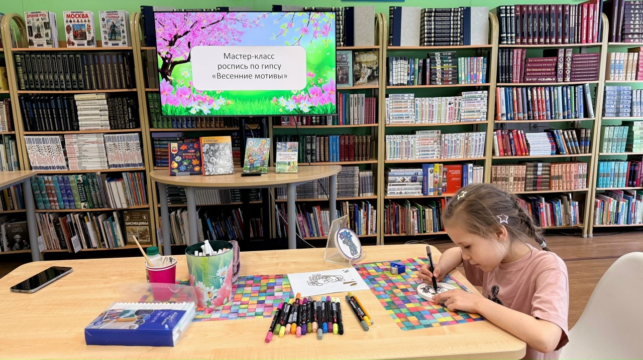 11 апреля в Центральной детской библиотеке им. А. П. Гайдара прошёл мастер‑класс росписи по гипсу «Весенние мотивы». Ребята поговорили о признаках весны, праздниках и красоте природы в это время года. Затем юные художники с увлечением расписали гипсовые тарелочки акриловыми маркерами. Героем композиций стал очаровательный медвежонок с букетом цветов. Работы получились по‑настоящему весенними и красивыми — каждый вложил в свою тарелочку частичку солнечного настроения.