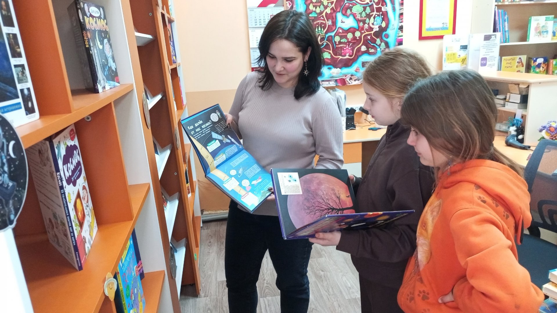 12 апреля в стенах Центральной детской библиотеки им. А. П. Гайдара состоялось торжественное открытие тематической книжной выставки, посвящённой Всемирному дню авиации и космонавтики. Юные гости библиотеки смогли погрузиться в завораживающий мир звёзд и планет. На стеллажах представлены увлекательные книги, раскрывающие тайны космоса, рассказывающие о жизни выдающихся космонавтов, гениальных изобретателей, талантливых конструкторов и прозорливых учёных. Живописные иллюстрации и захватывающие повествования перенесли ребят в безграничные просторы космоса, познакомили их с вехами освоения космического пространства, устройством небесных тел и личностями, чьи открытия и достижения стали фундаментом для развития этой области науки и техники.