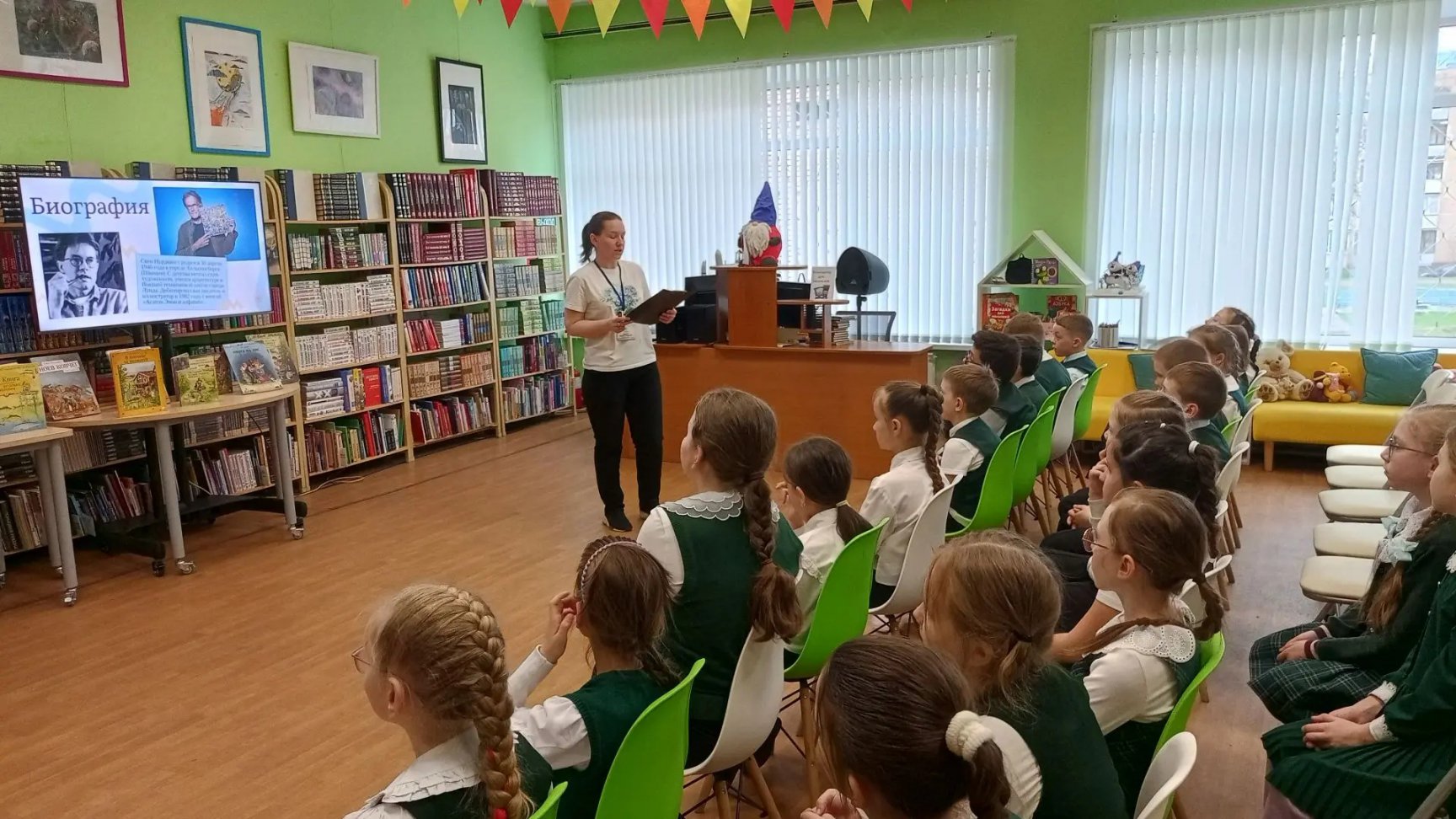 15 апреля в Центральной детской библиотеке им. А. П. Гайдара для учеников 1 «А» и 3 «Б» классов гимназии им. В. Н. Татищева прошло литературное путешествие «Петсон и Финдус в кругу друзей», посвящённое 80-летию шведского писателя и художника Свена Нурдквиста. Мальчишки и девчонки познакомились с творчеством Нурдквиста, узнали интересные факты о его жизни и творчестве. Особый восторг у ребят вызвала интерактивная игра, в которой им предстояло проявить наблюдательность, отыскивая спрятавшихся в многочисленных иллюстрациях котиков. В завершении мероприятия дети посмотрели добрый фильм «Петсон и Финдус 2. Лучшее на свете Рождество». Встреча прошла в весёлой обстановке и наверняка вдохновила ребят на погружение в творчество Нурдквиста.