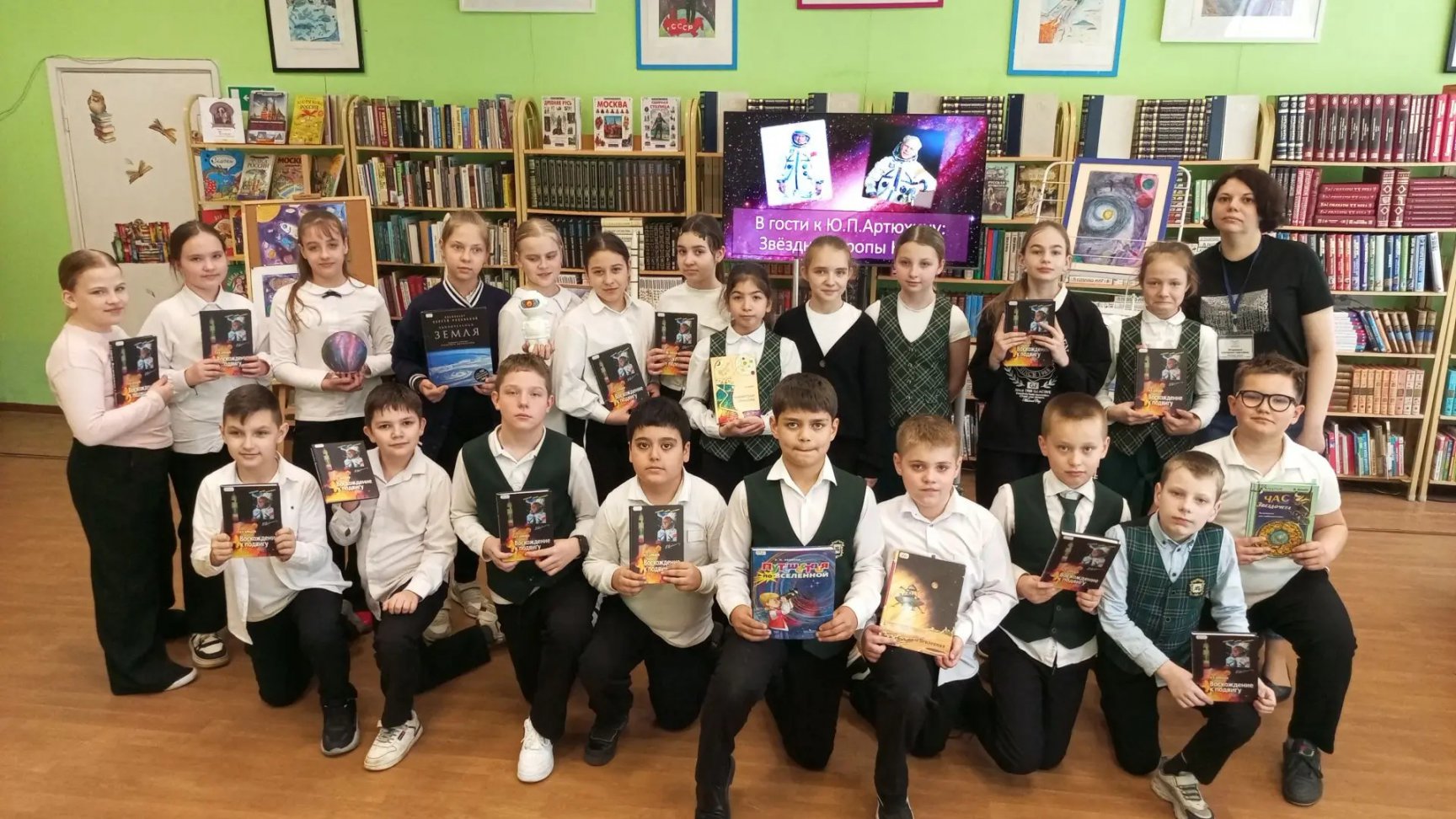 14 апреля в Центральной детской библиотеке им. А. П. Гайдара для учеников 2 «В», 4 «Б» и 5 «А» классов гимназии им. В. Н. Татищева прошло краеведческое занятие «В гости к Ю. П. Артюхину: Звёздные тропы Клина». Ребята узнали множество занимательных сведений о жизненном пути Юрия Петровича Артюхина и его стремлении к заветной мечте — полёту в космос. Затем они посмотрели документальный фильм, повествующий о космической экспедиции Юрия Артюхина и П. Р. Поповича на борту корабля «Союз-14». После просмотра юные читатели проверили знания о Вселенной, приняв участие в увлекательной викторине. Кроме того, мальчишки и девчонки с энтузиазмом исполнили танец «Если очень захотеть, можно в космос полететь». Завершилось мероприятие знакомством с тематической литературой, среди которой центральное место занимает книга И. В. Давыдова «Восхождение к подвигу».