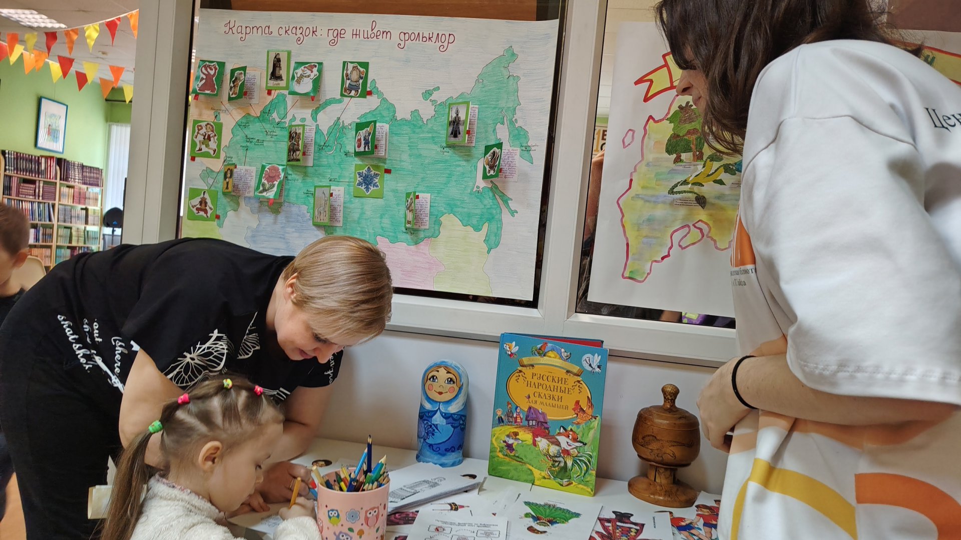 Затем ребята в познавательной викторине «Народов много — страна одна!» с азартом проверили знания о различных этнических группах России, открыв для себя новые, удивительные факты. После этого библиотека превратилась в увлекательное пространство для игры-путешествия «Литературный мост дружбы». Участники получили маршрутные листы и с энтузиазмом начали перемещаться по станциям, выполняя тематические задания, посвящённые самобытности и традициям народов нашей необъятной Родины.