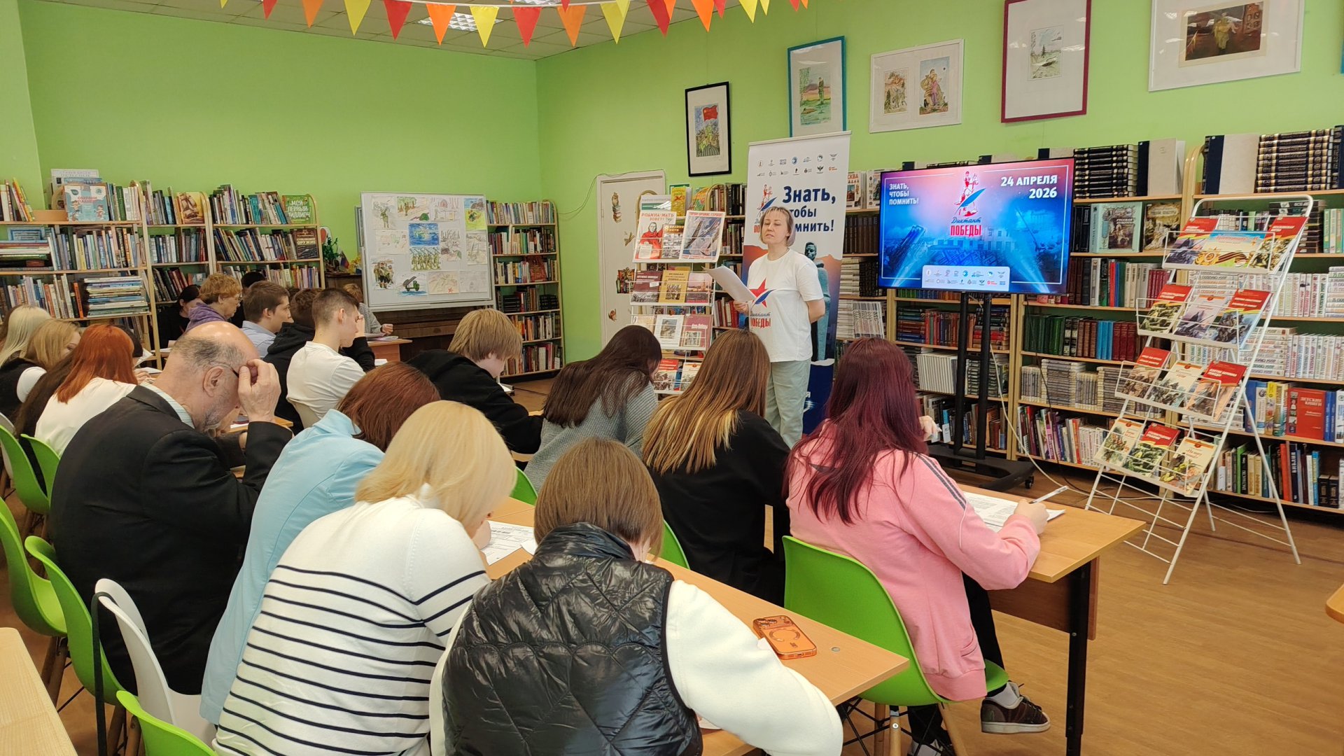 24 апреля Центральная детская библиотека им. А. П. Гайдара впервые стала площадкой для ежегодной Международной патриотической акции «Диктант Победы». Это событие — отличный повод вспомнить великие даты, имена полководцев и памятные места, связанные с историей нашей страны. «Диктант Победы» проводится с 2019 года, а впервые состоялся 7 мая, в честь 74-й годовщины Победы в Великой Отечественной войне. В 2026 году акция посвящена сразу двум важным юбилеям: 130-летию со дня рождения выдающегося полководца, маршала Георгия Константиновича Жукова и 85-летию с начала Великой Отечественной войны. Участие в диктанте — не только проверка знаний, но и возможность отдать дань уважения подвигу советского народа, вспомнить о важности исторической памяти и почувствовать себя частью большого дела.