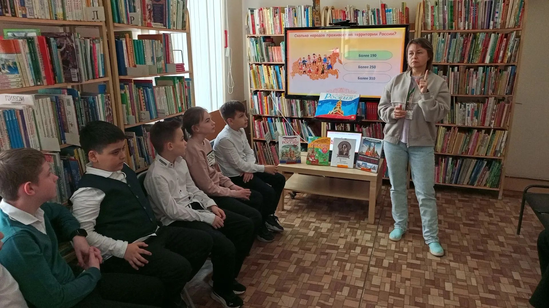 28 апреля в Центральной детской библиотеке им. А. П. Гайдара для четвероклассников прошла познавательная викторина «Народов много – страна одна!».