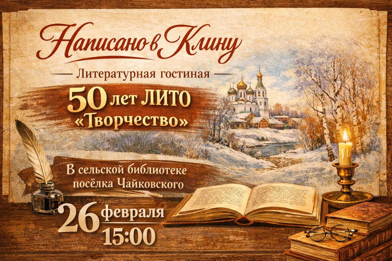 Сельская библиотека посёлка Чайковского приглашает читателей и гостей на литературную гостиную, посвящённую 50-летию литературного объединения «Творчество» — значимому культурному событию, объединяющему людей, преданных слову, поэзии и литературному наследию родного края.