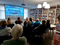 25 сентября в клубе любителей кино «Синема» в Сельской библиотеке п. Чайковского состоялся просмотр и обсуждение документального фильма «Сцена на передовой», посвященного творческим бригадам, которые в настоящее время работают в зоне проведения Специальной военной операции (СВО). Документальная лента повествует об участниках СВО, а также об артистах и художниках, работающих в зоне боевых действий.