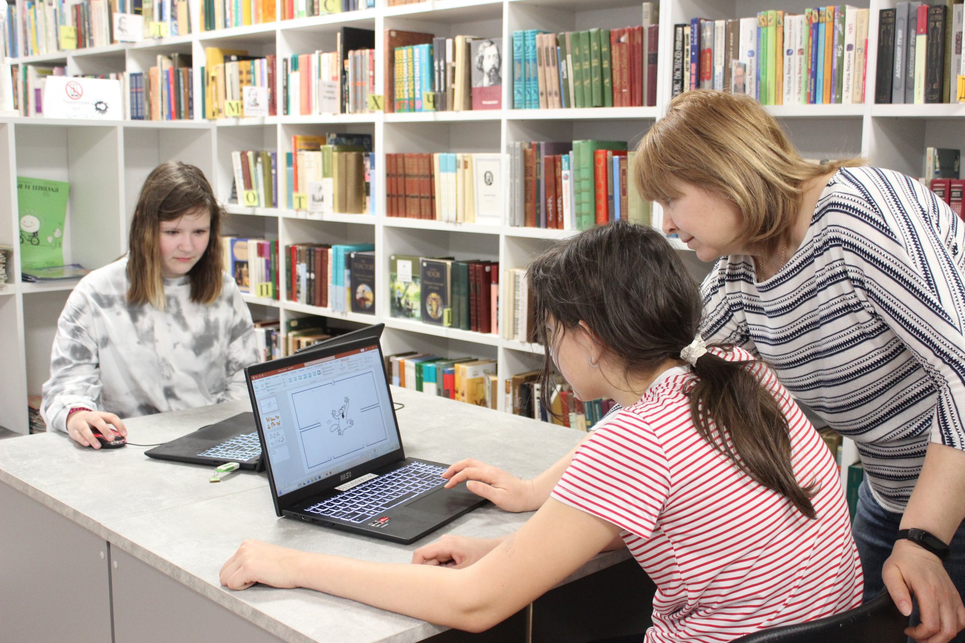 16 апреля в модельной Клинской детской библиотеке № 2 прошло очередное занятие клуба любителей комиксов «Мастерская комиксов». В этот раз юных читателей ждало погружение в мир цифрового искусства: предстояло создать собственный комикс, используя возможности удобного программного обеспечения.