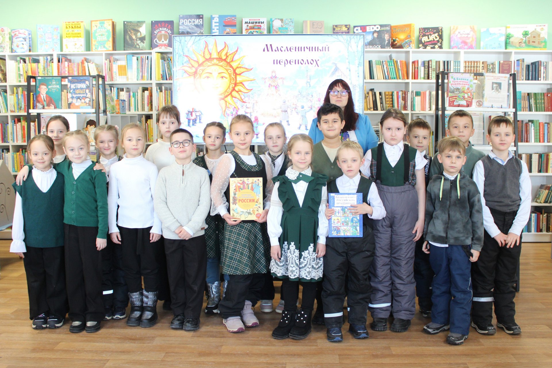 17 февраля в модельной Клинской детской библиотеке № 2 для учеников 2 «Э» класса лицея им. Д. И. Менделеева прошла яркая, шумная и очень весёлая интеллектуальная игра «Масленичный переполох», посвящённая самому вкусному и задорному празднику в году — Масленице.