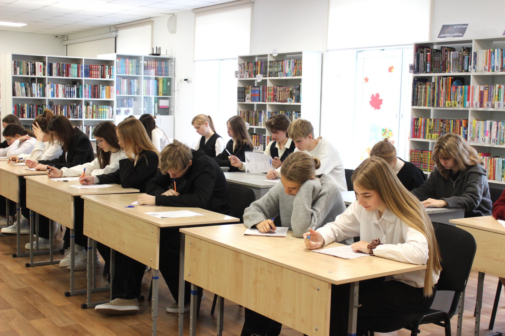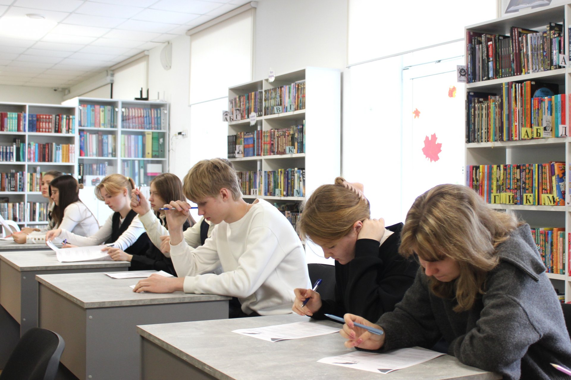 26 сентября в модельной Клинской детской библиотеке № 2 прошла международная просветительская акция «Литературный диктант», в которой приняли обучающиеся 11 «Б» класса лицея им. Д. И. Менделеева, чтобы проверить себя, насколько хорошо они помнят произведения классической русской литературы. Эта акция проходит уже в пятый раз по инициативе Мурманской государственной областной универсальной научной библиотеки в партнерстве с Всероссийской библиотекой иностранной литературы имени Маргариты Ивановны Рудомино при поддержке Федерального агентства по делам Содружества Независимых Государств. В 2025 году по всему миру работают более 1400 площадок «Литературного диктанта», одной из таких площадок стала наша библиотека. Организаторы подготовили для ребят 20 вопросов в тестовой форме, а также с открытым ответом.