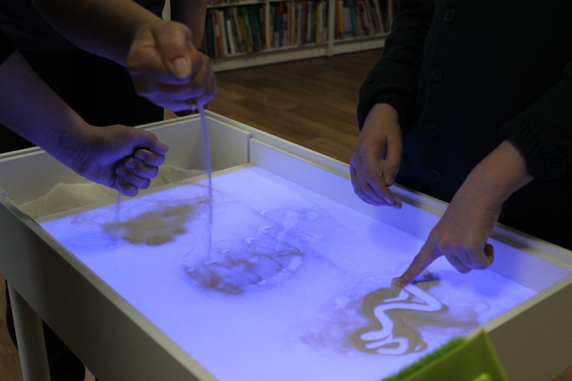 14 октября в модельной Клинской детской библиотеке № 2 для наших читателей был проведен первый мастер-класс по песочной анимации «Песочные фантазии». Ребята познакомились с интерактивной песочницей, правилами работы с песком, используемыми инструментами и приспособлениями. Юные творцы увлеченно колдовали над световым столом, пробуя себя в роли художника, используя вместо красок и кистей песок и собственные руки.