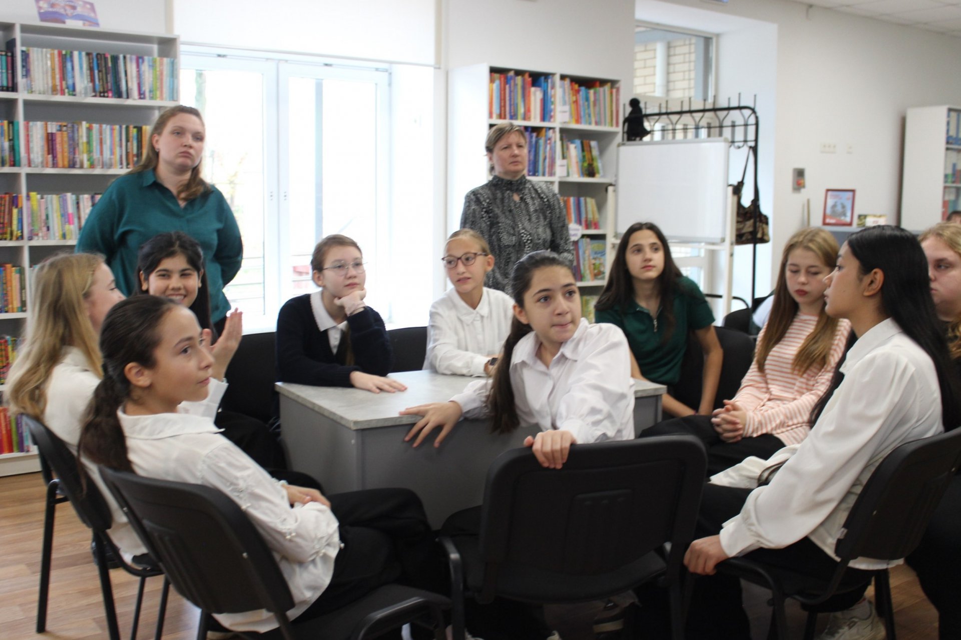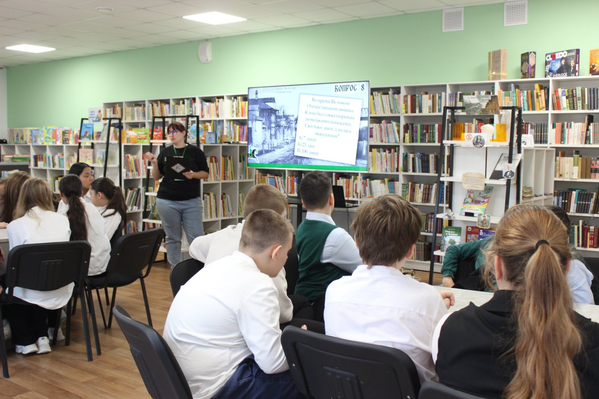 16 октября в модельной Клинской библиотеке № 2 состоялся краеведческий квиз «Клин. VII веков в пути» для шестиклассников и семиклассников лицея имени Д. И. Менделеева. Участникам предстояло ответить на вопросы о ключевых событиях в истории развития города, известных жителях и его знаменитых гостях, памятниках архитектуры и промышленном развитии Клина — от прошлых лет до наших дней.