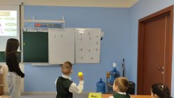 Чтобы закрепить полученные знания, девочки и мальчики приняли участие в увлекательной игре «Красный и зелёный». Задача была непростой: проявить ловкость и выбить мячиком только зелёные карточки «Плюсов интернета», ловко избегая красных карточек «Минусов интернета».