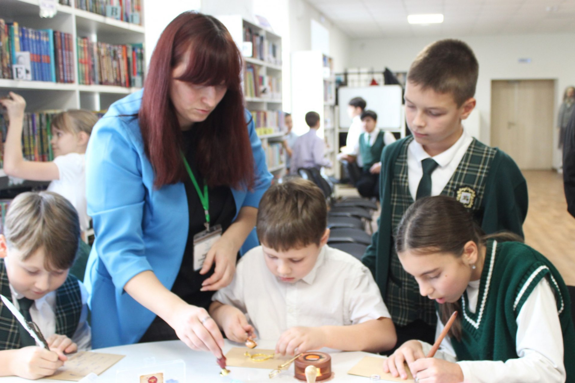 24 октября в модельной Клинской детской библиотеке № 2 четвероклассники школы им. М. Калининой приняли участие в краеведческой викторине «По следам государевых ямщиков», подготовленной сотрудником библиотеки. Школьники уверенно отвечали на вопросы о том, как наш город стал важным ямщицким пунктом и какой указ даровал Клину статус города, о Ямской слободе, о жизни ямщиков, их традициях, особенностях одежды и транспорта, о способах извоза и доставки корреспонденции. Особый восторг у детей вызвал мастер-класс по созданию старинных писем. На память о встрече они подписывали конверты перьевыми ручками, запечатывали их сургучом и ставили личные печати.