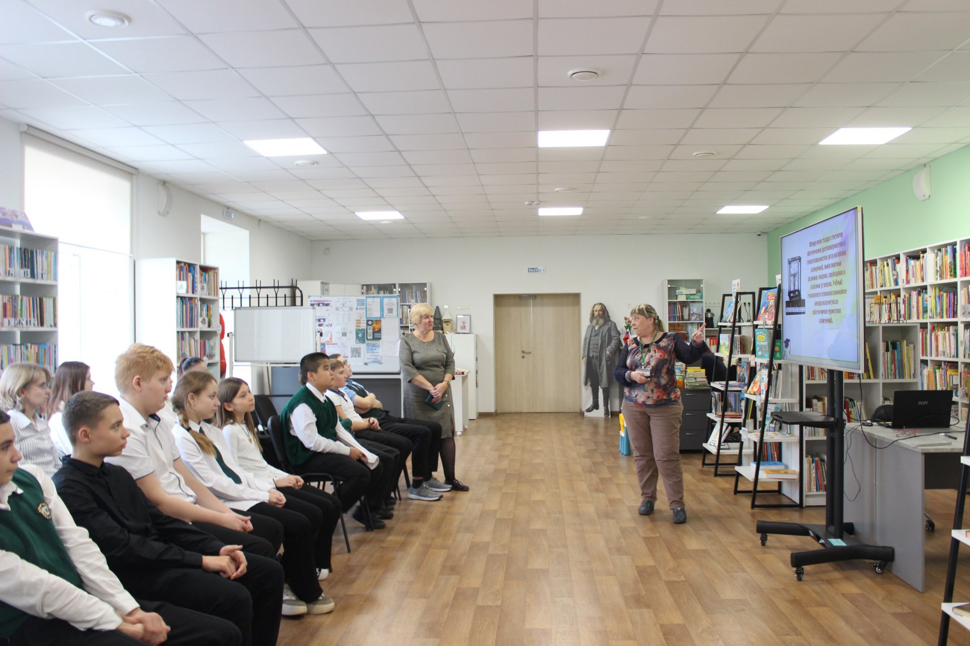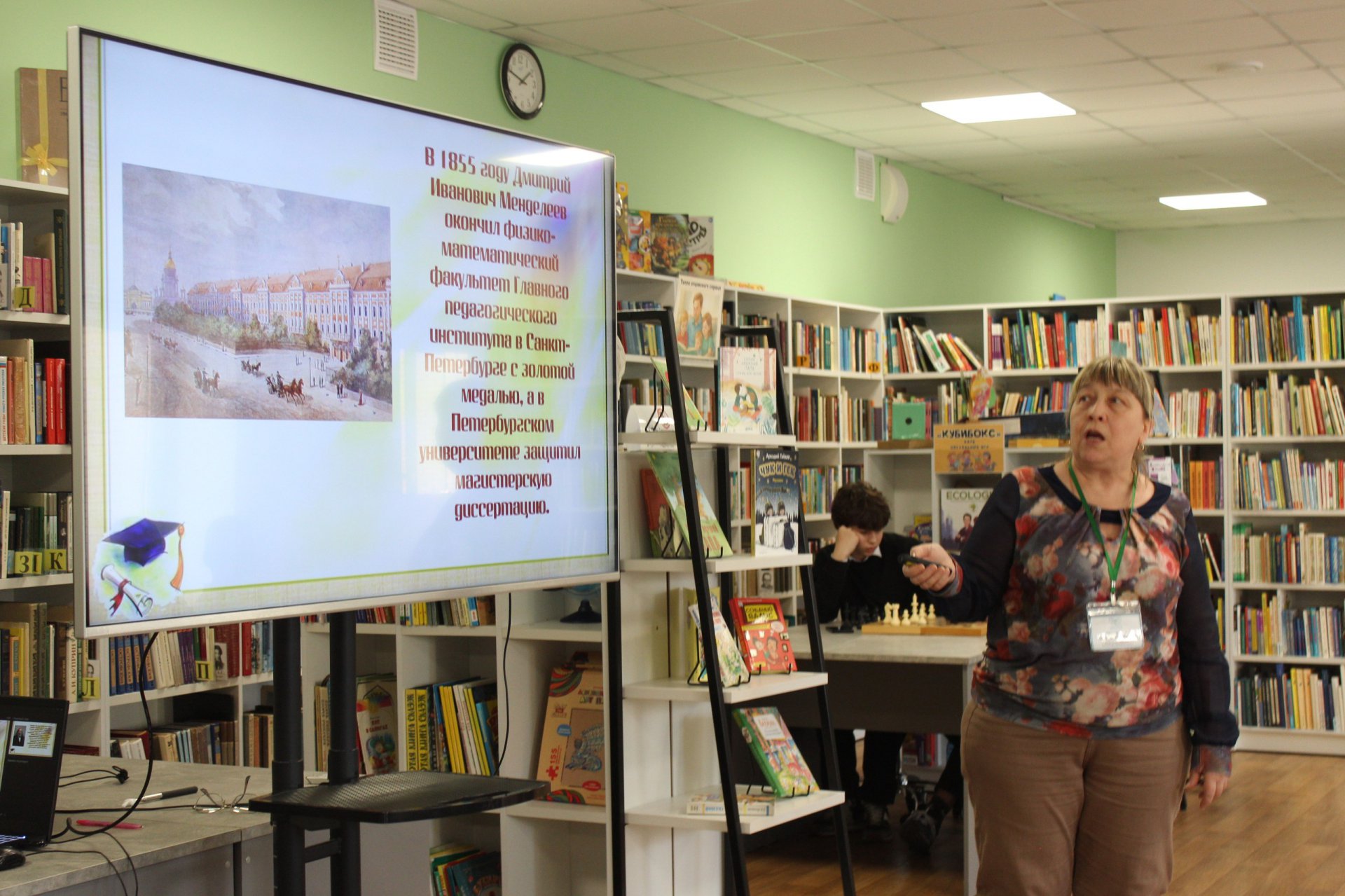 30 октября в модельной Клинской детской библиотеке № 2 для семиклассников лицея им. Д. И. Менделеева было проведено краеведческое занятие «Менделеев — гордость Клинского края».