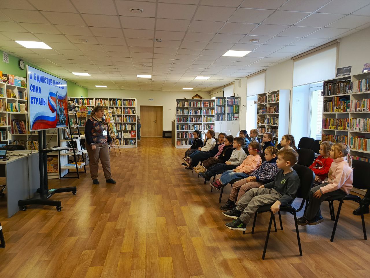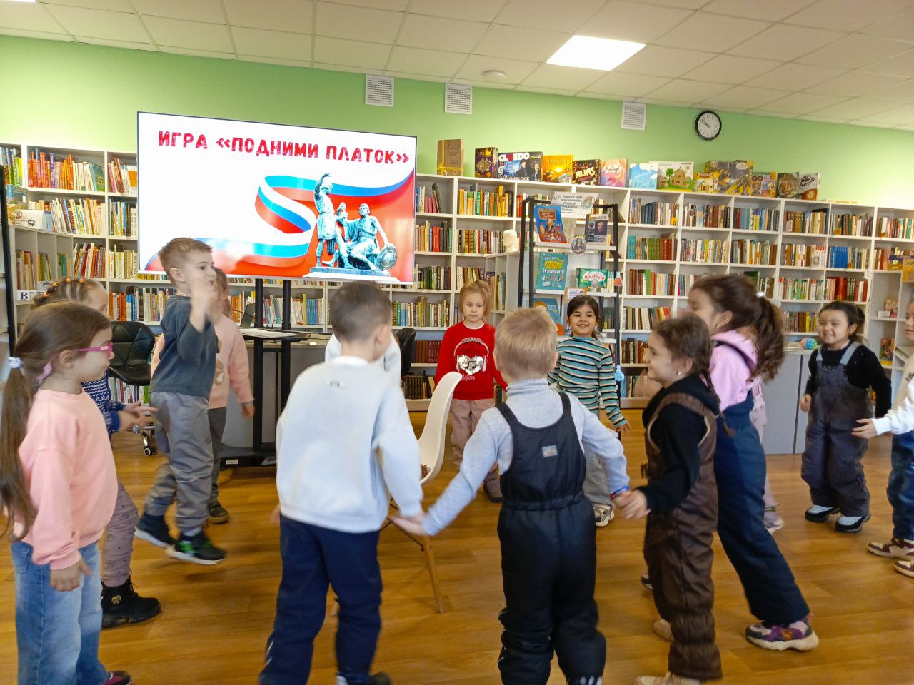 5 ноября в модельной Клинской детской библиотеке № 2 для воспитанников центра детства «Жемчужинка» группы «Зайчики» было проведено тематическое мероприятие «В единстве народа — сила страны», приуроченное ко Дню народного единства. Библиотекарь познакомила наших юных читателей с событиями 1612 года, рассказала о подвигах предков, защищавших независимость своей страны. Мальчишки и девчонки познакомились с традициями и обычаями различных народов России, приняв участие в играх: «Иголка и нитка», «Загони овец в кошару» и «Подними платок».