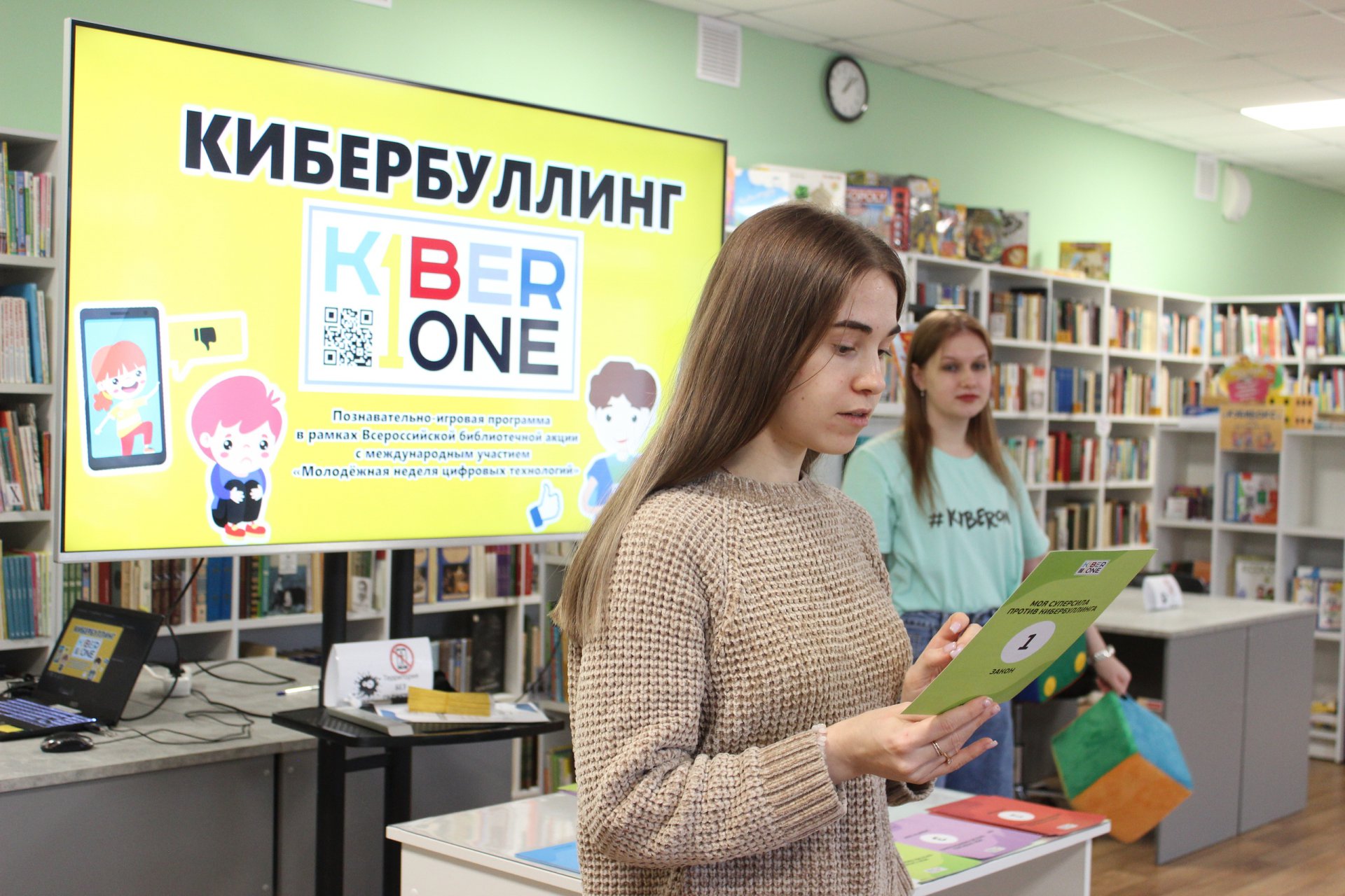 25 ноября в модельной Клинской детской библиотеке № 2 для учеников 4 «Э» класса лицея им. Д. И. Менделеева в рамках Всероссийской библиотечной акции с международным участием «Молодёжная неделя цифровых технологий» состоялась познавательно-игровая программа «Кибербуллинг», которую провели специалисты международной кибершколы программирования «KiberOne» Березова Карина Сергеевна и Палаткина Виктория Витальевна.
